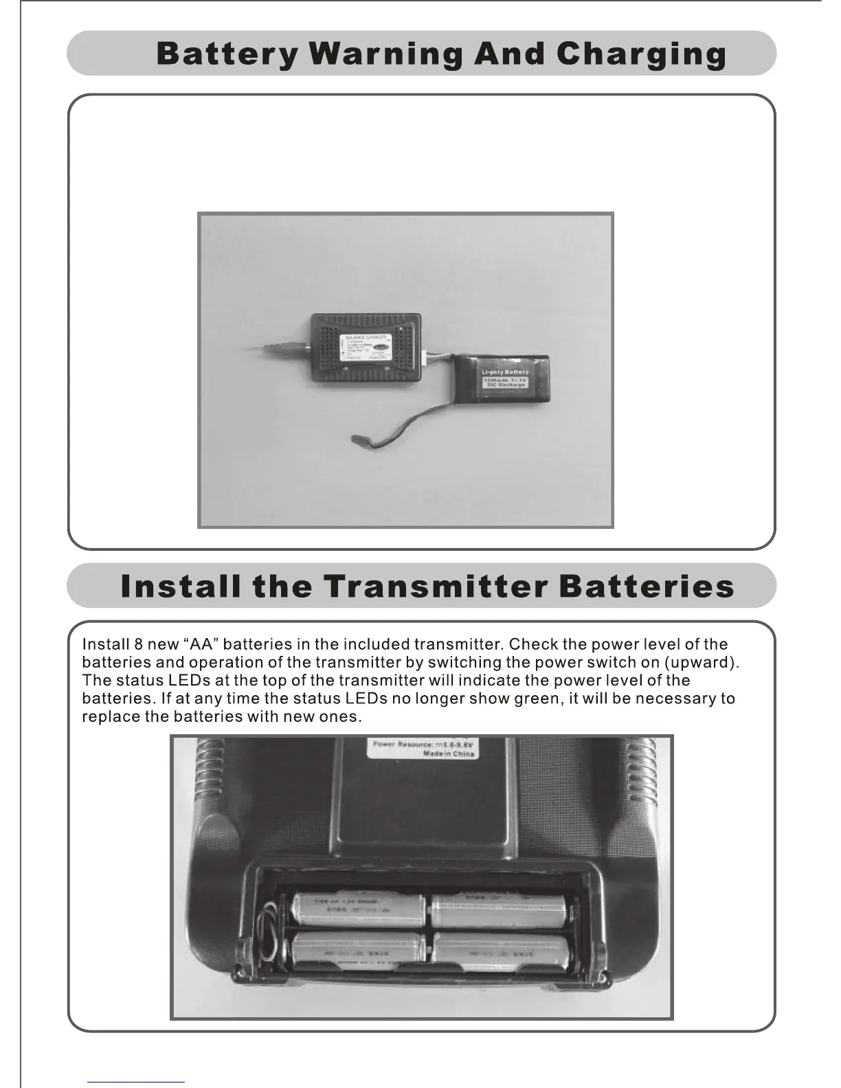 Dynam P-51D Mustang - Install the Transmitter Batteries; Transmitter Battery Installation and Check