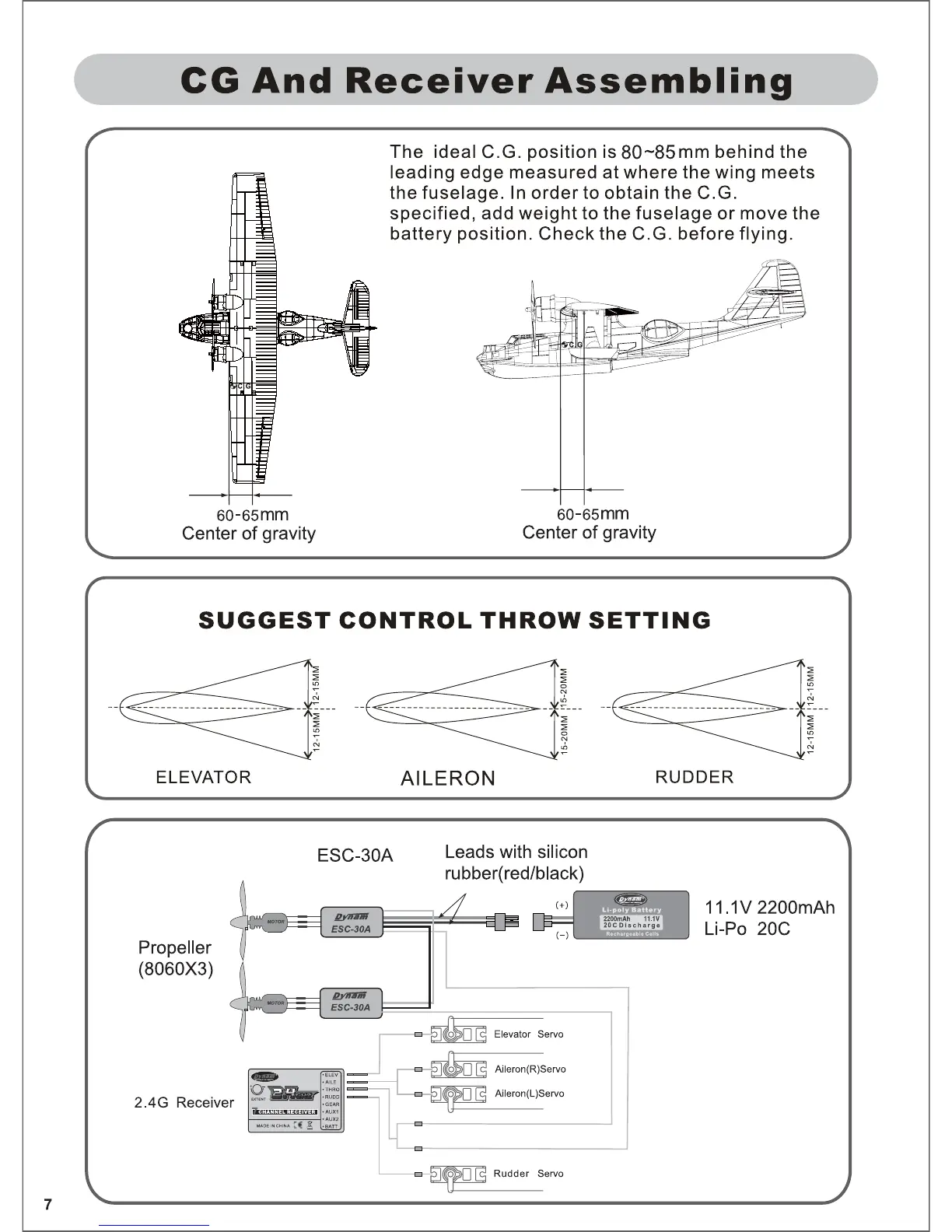 Dynam PBY Catalina - CG and Receiver Assembling; Suggest Control Throw Setting