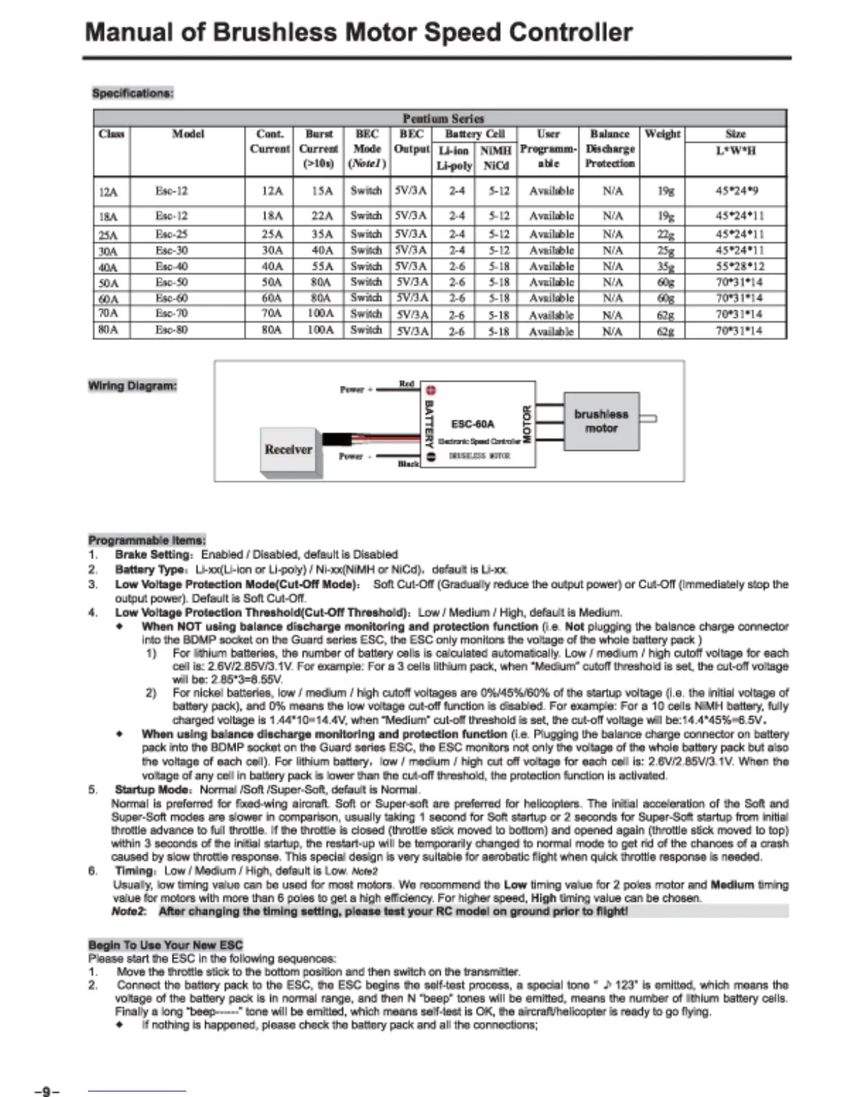 Dynam Pitts 12 8947 - Manual of Brushless Motor Speed Controller; Begin To Use Your New ESC