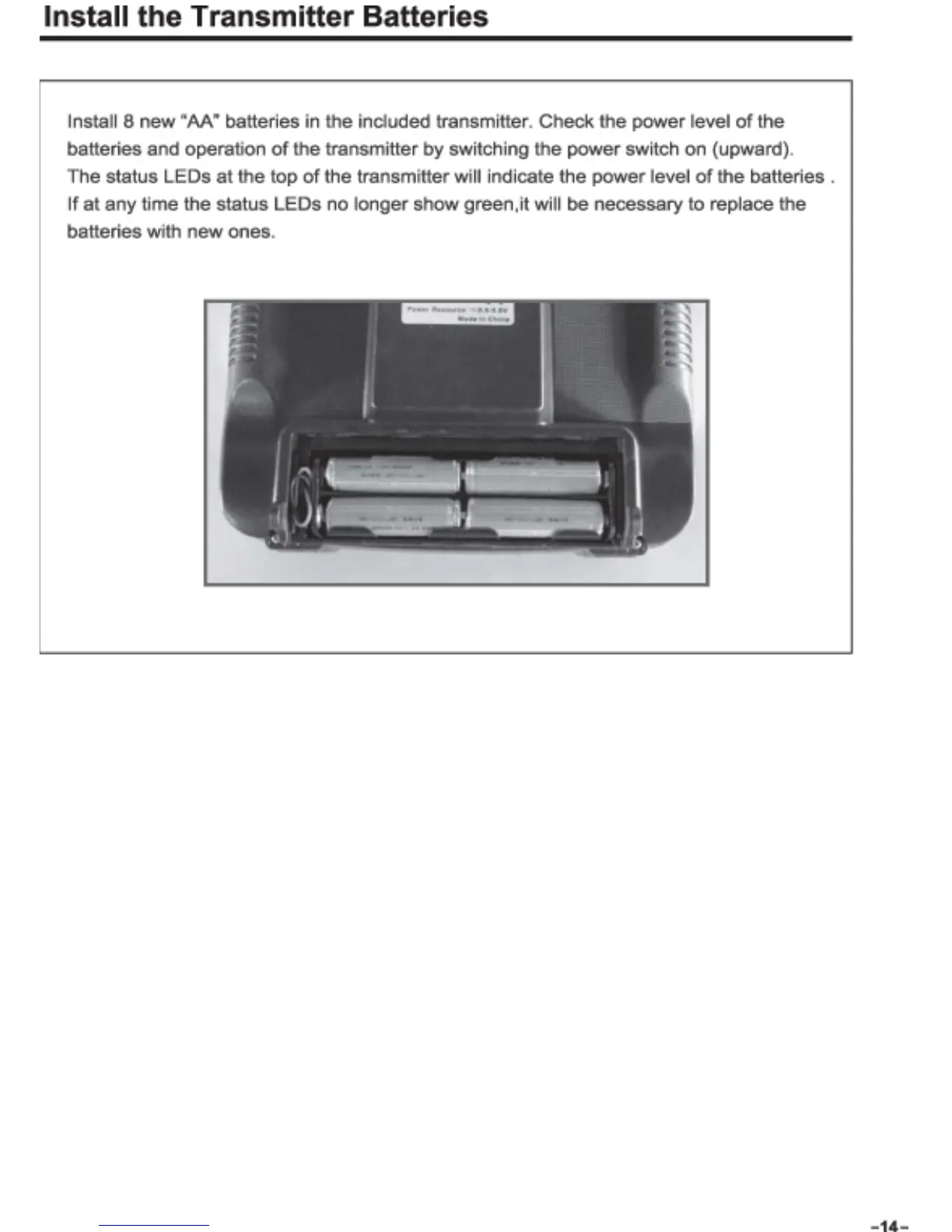 Dynam Pitts 12 8947 - Install the Transmitter Batteries