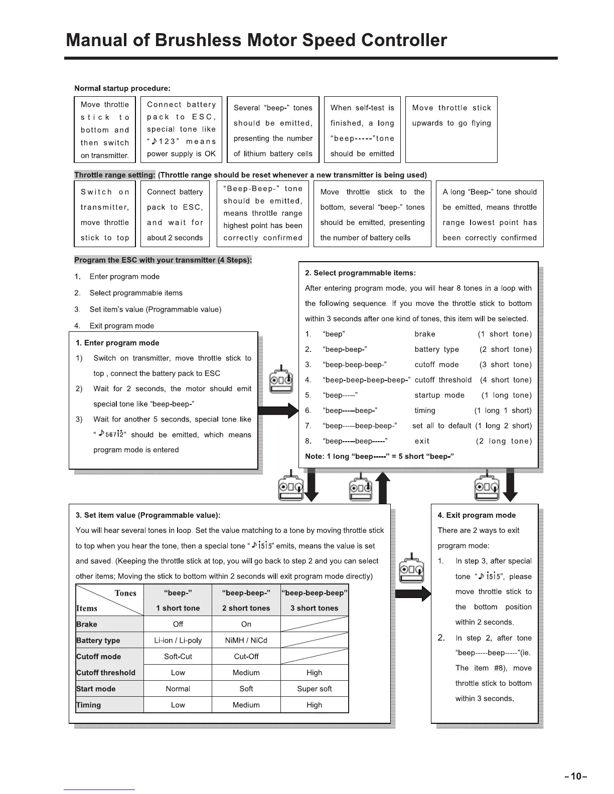 Dynam Sbach 342 - Throttle Range Setting; Enter Program Mode; Select Programmable Items; Set Item Value