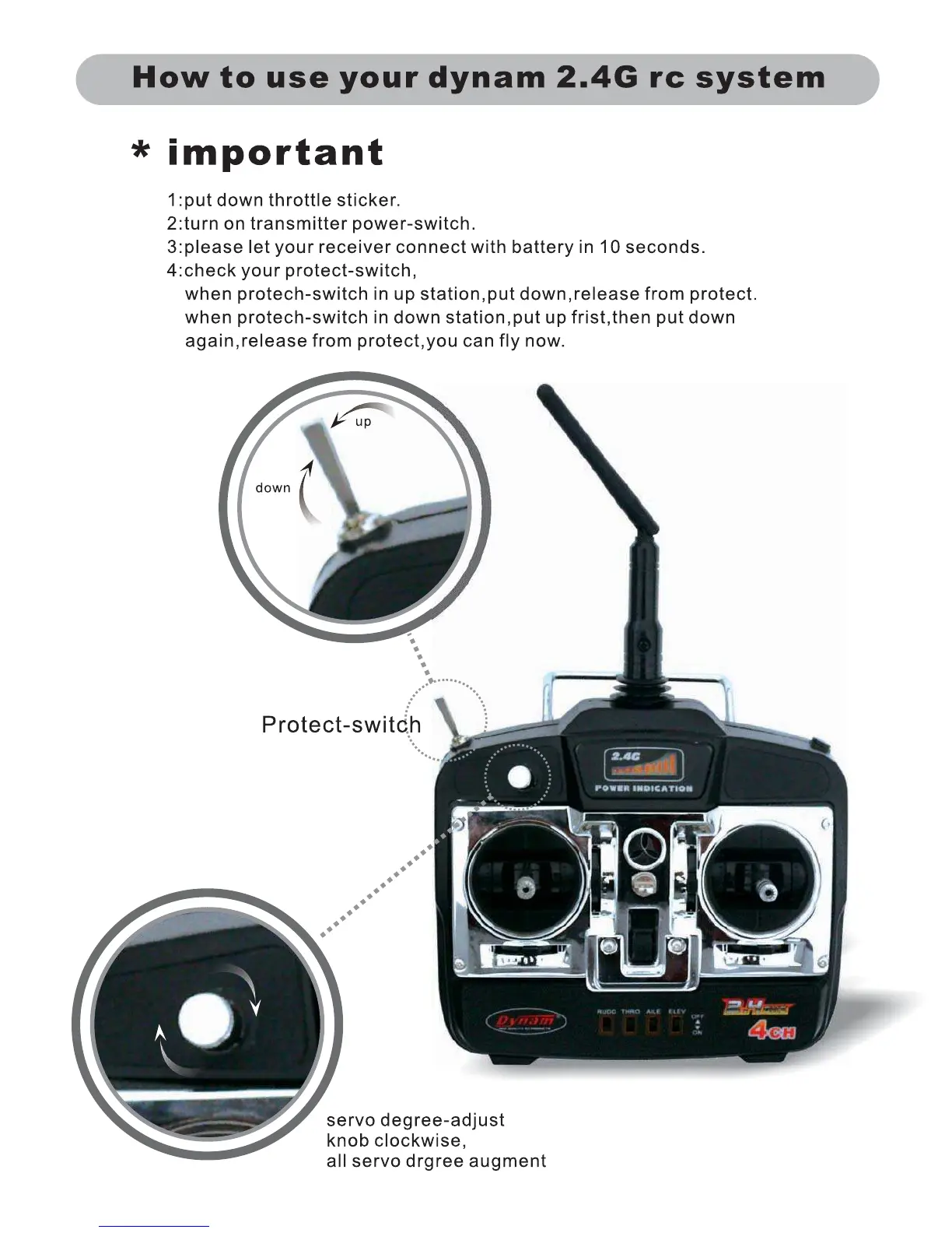 Dynam SkyTrainer - Dynam 2.4 G RC System Operation; Important Operation Steps