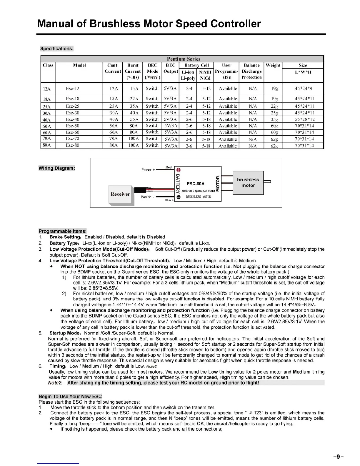 Dynam smart dy8962 - Wiring Diagram; Programmable Items; Begin to Use Your New ESC