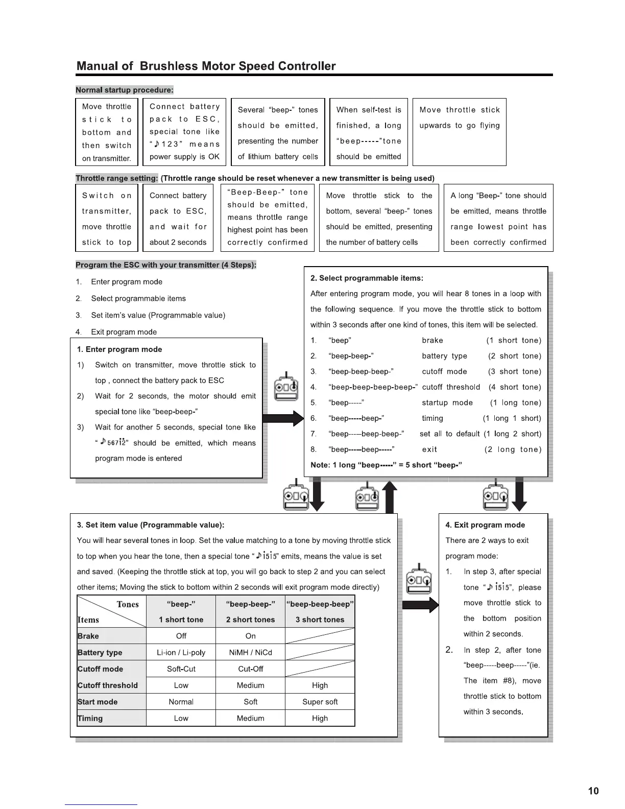 Dynam Spitfire - Brushless ESC Manual; Normal Startup and Throttle Range Setting; ESC Programming Procedures