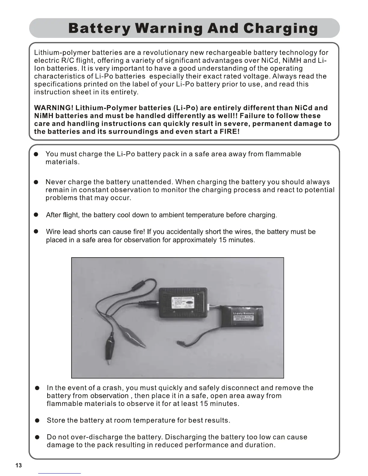 Dynam Spitfire - Battery Warning and Charging; Li-Po Battery Handling Precautions