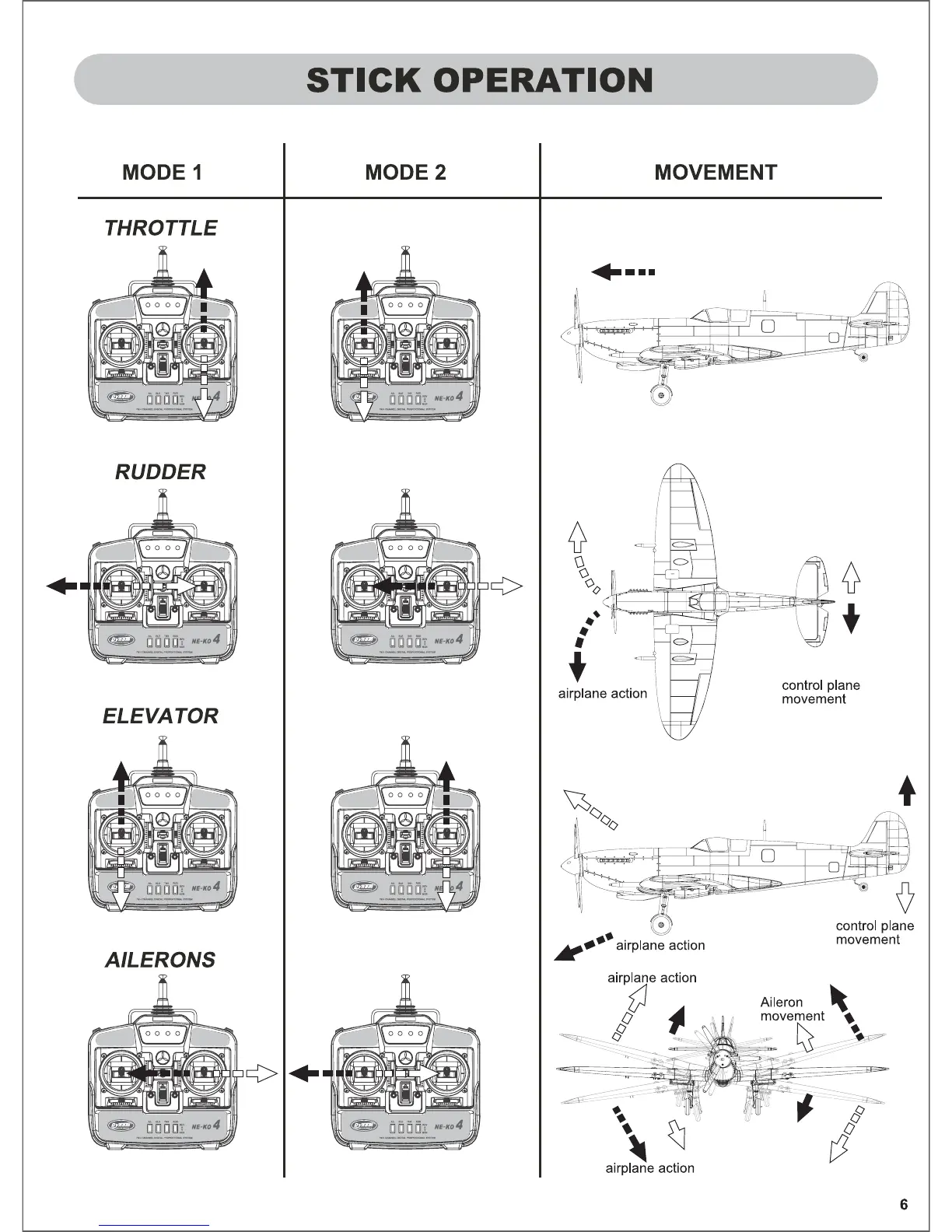Dynam Spitfire - Stick Operation; Transmitter Control Functions