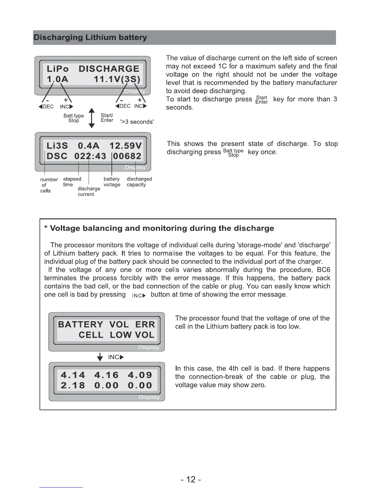 Dynam Supermate DC6 - Lithium Battery Discharging; Discharging Lithium Battery; Voltage Balancing During Discharge; Lithium Battery Discharge Error Handling