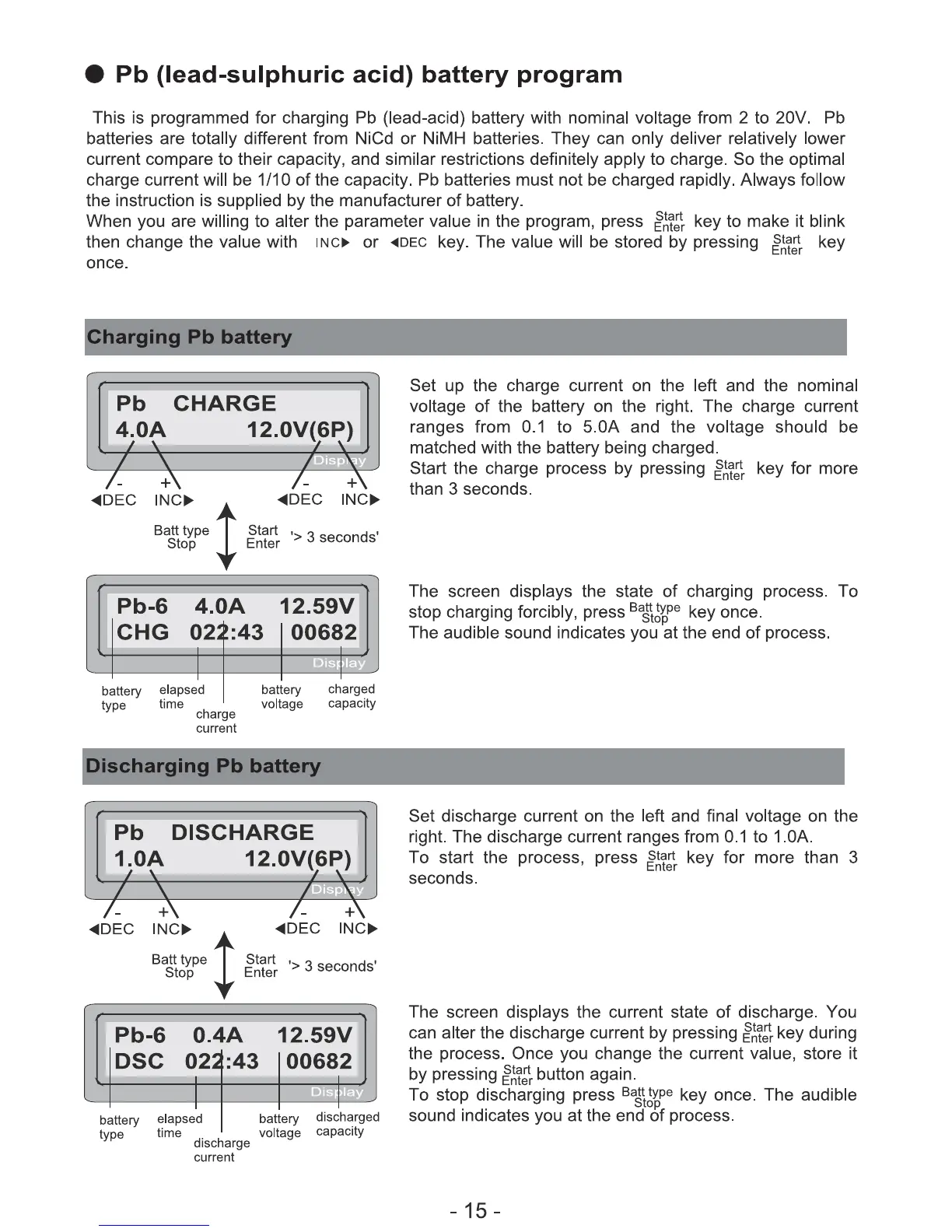 Dynam Supermate DC6 - Pb (Lead-Acid) Battery Programs; Charging Pb Battery; Discharging Pb Battery