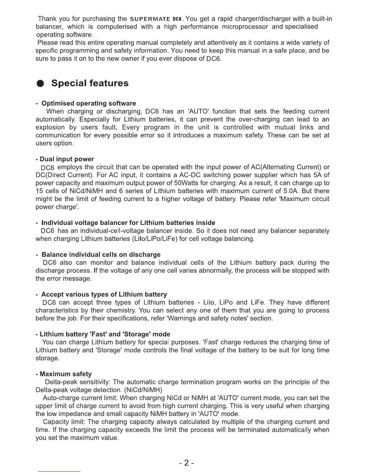 Dynam Supermate DC6 - Special Features; Lithium Battery Management; Maximum Safety Features