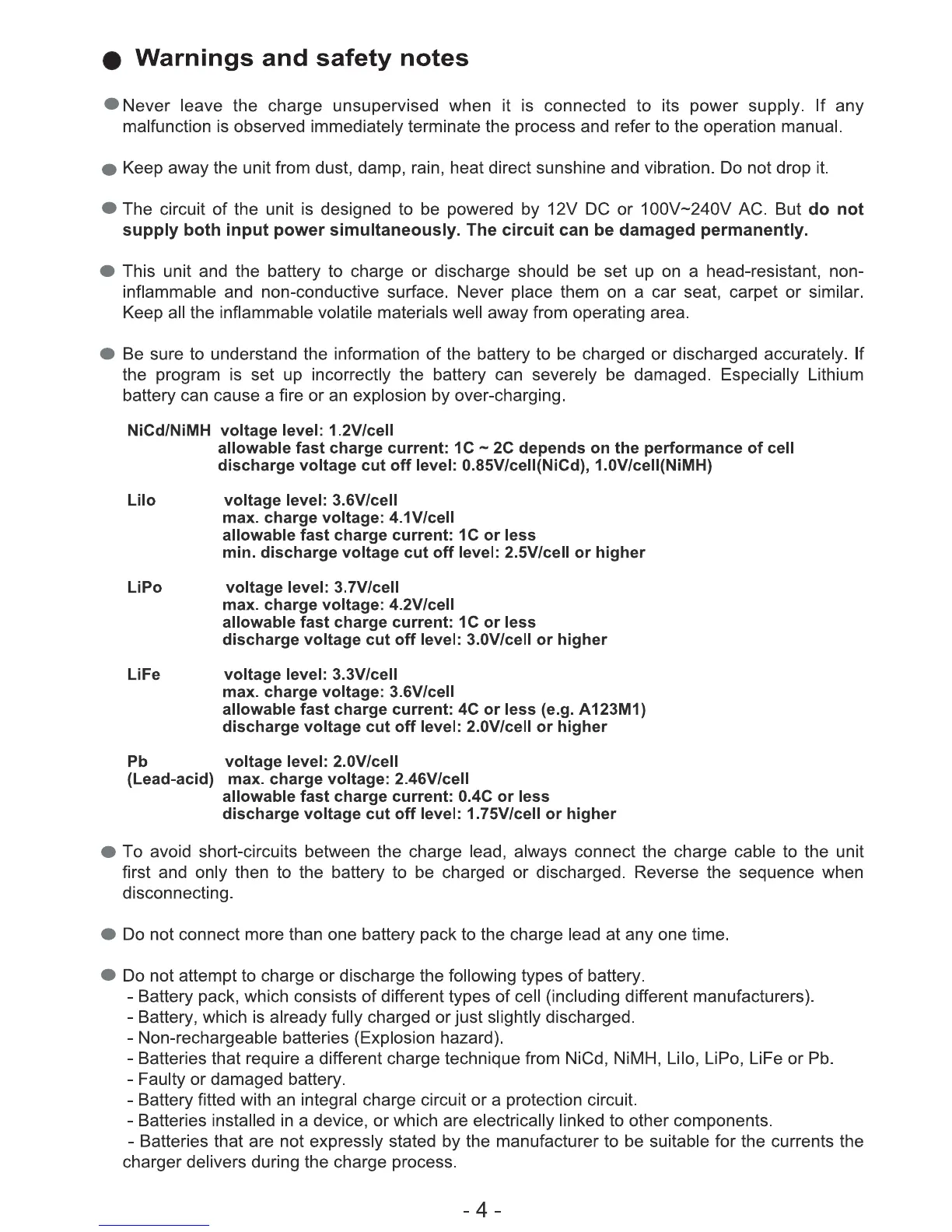 Dynam Supermate DC6 - Warnings and Safety Notes; General Safety Precautions; Battery Type Specific Safety; Connection and Battery Handling Safety