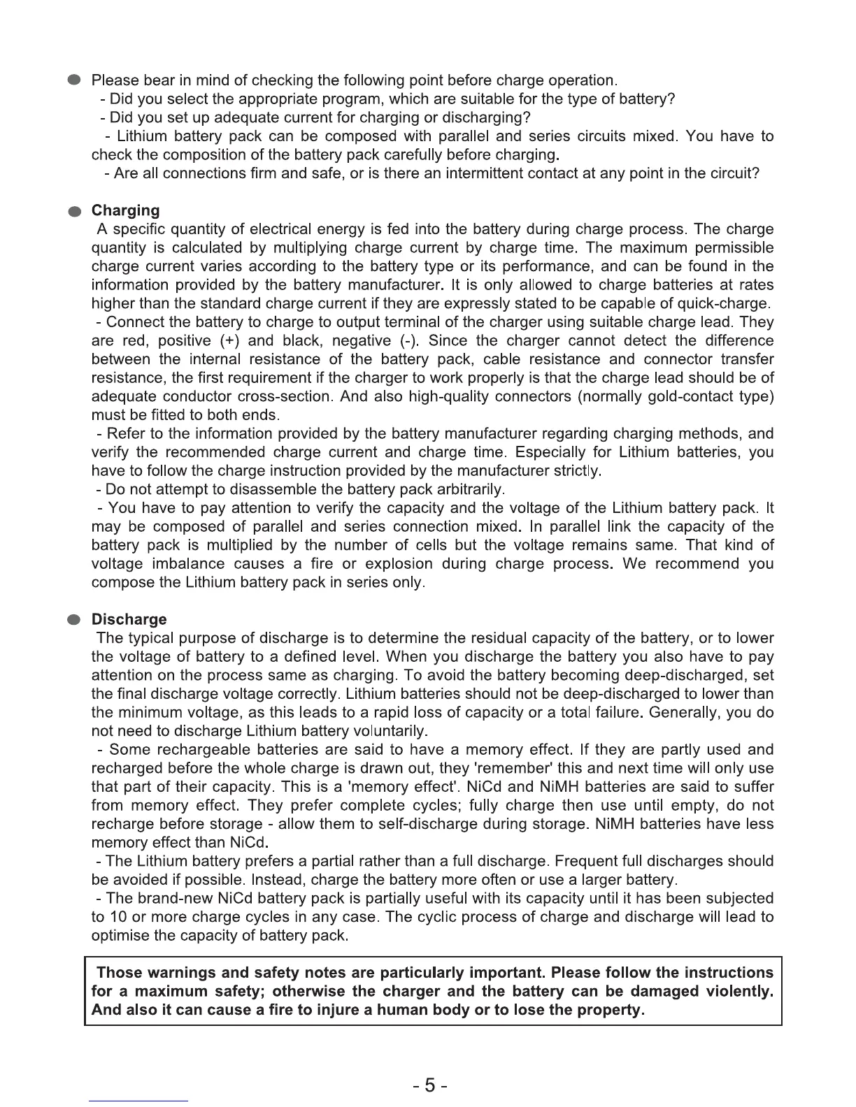 Dynam Supermate DC6 - Safe Charging and Discharge Practices; Pre-Charge Operation Checks; Safe Charging Practices; Safe Discharge Practices