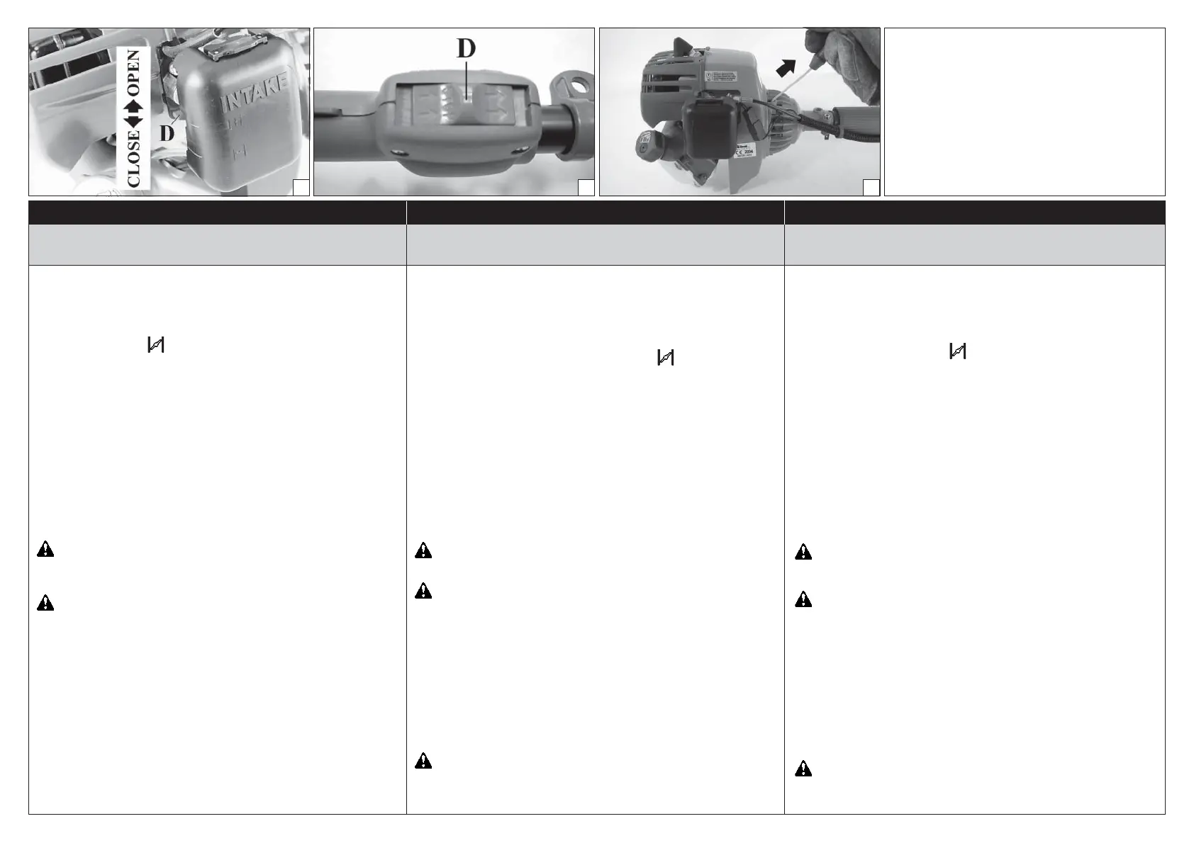Den Chokehebel (D, Abb. 28) in Stellung CLOSE bringen. Die Motorsense in