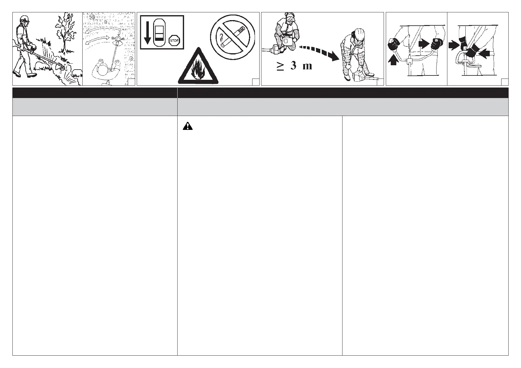 1-Gebruik de bosmaaier nooit als u vermoeid bent of wanneer