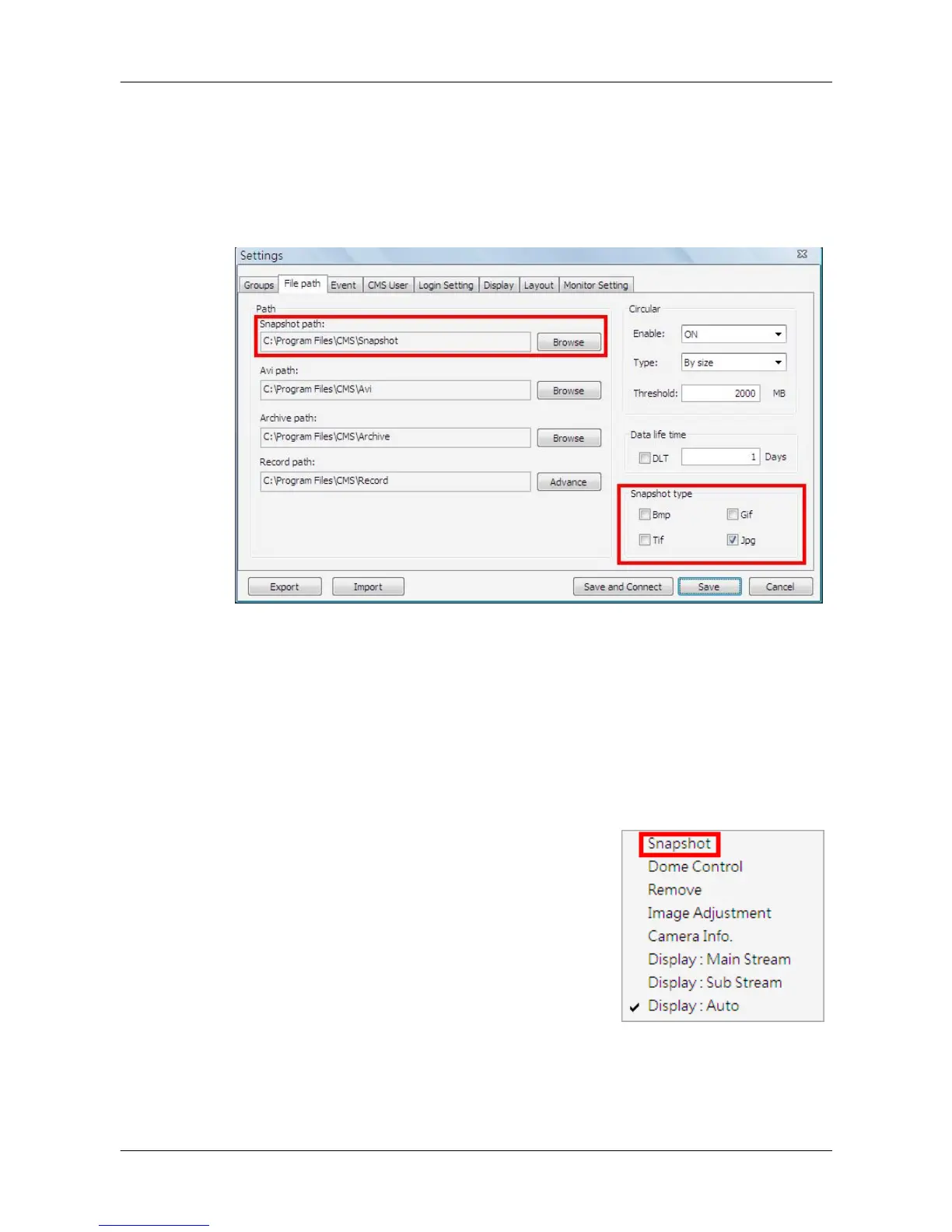 “\CMS\Snapshot\” or the folder that users selected in <File Path> setting.