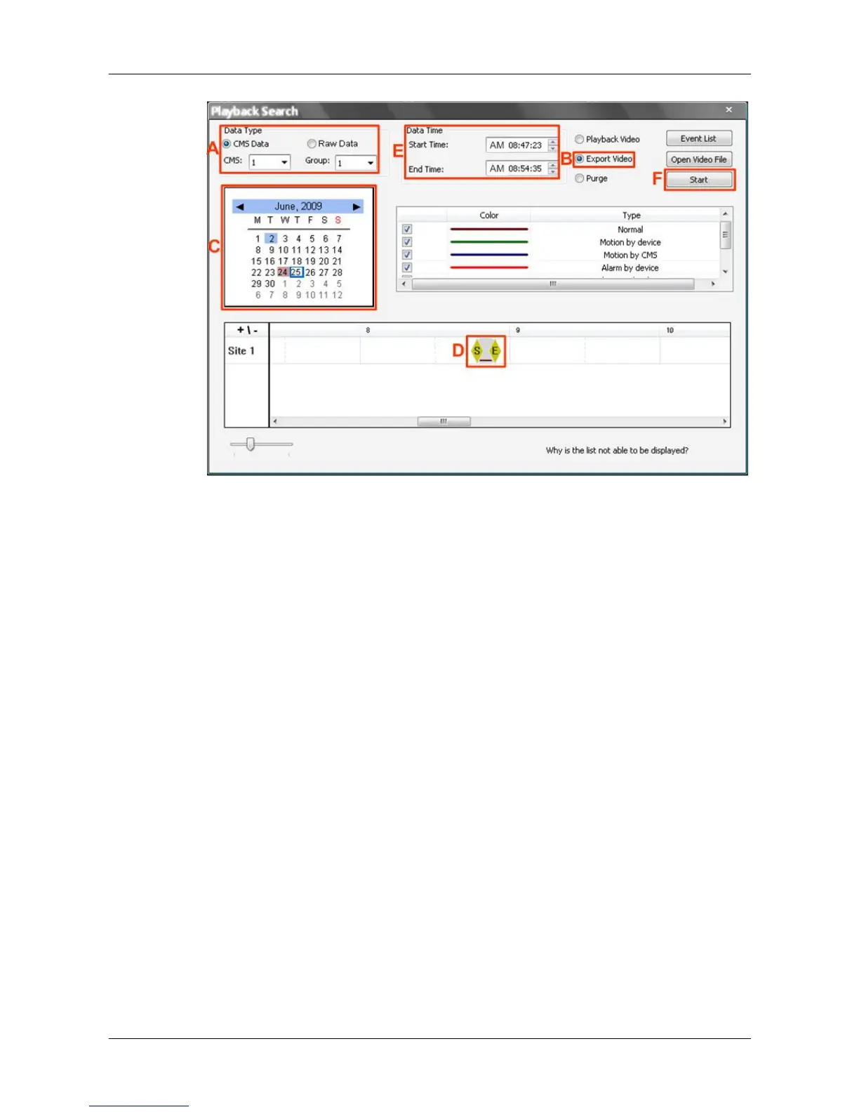 Step E. The start and end time of the selected video will be displayed here.
