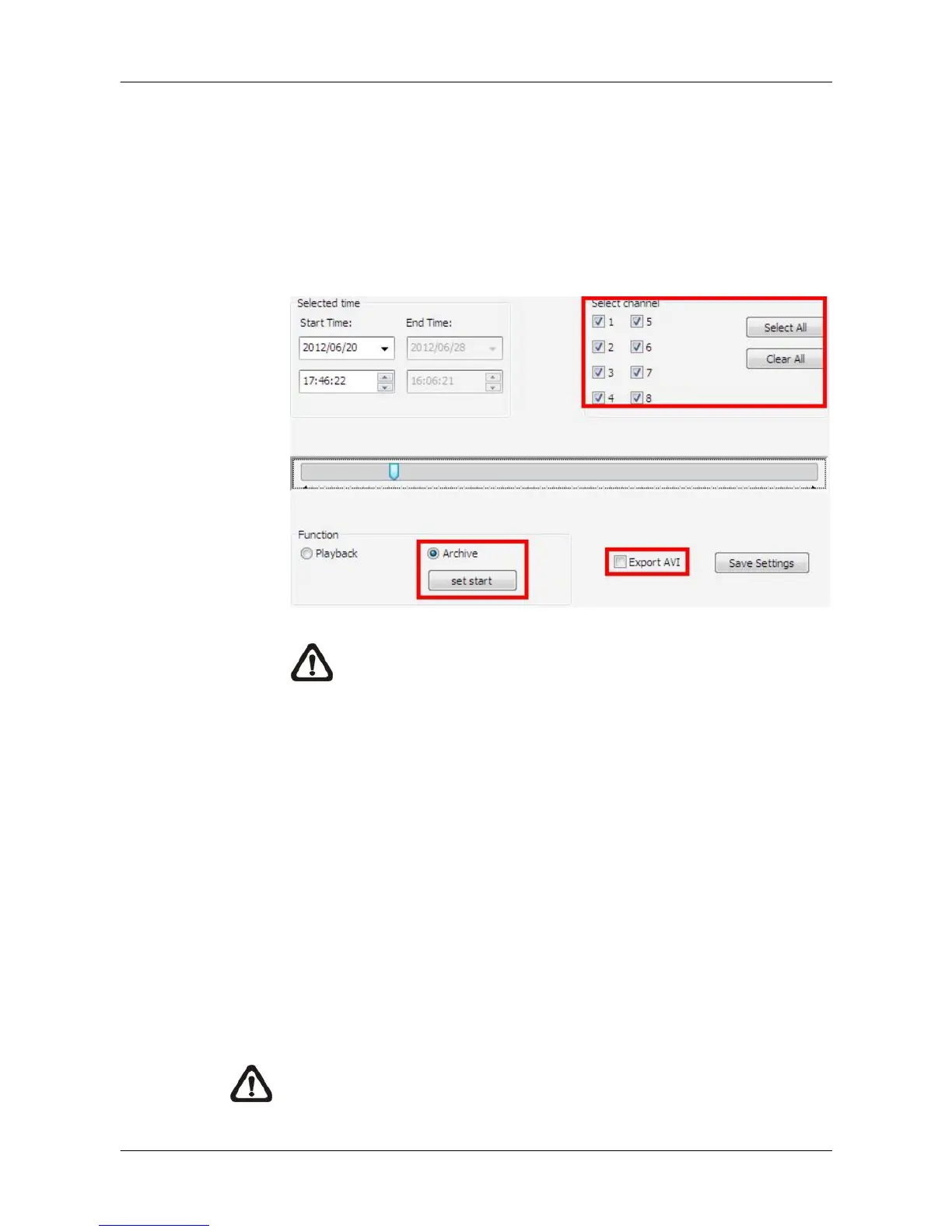 Step 1. First select <Archive> in “Function” area. Then “Selected channel”