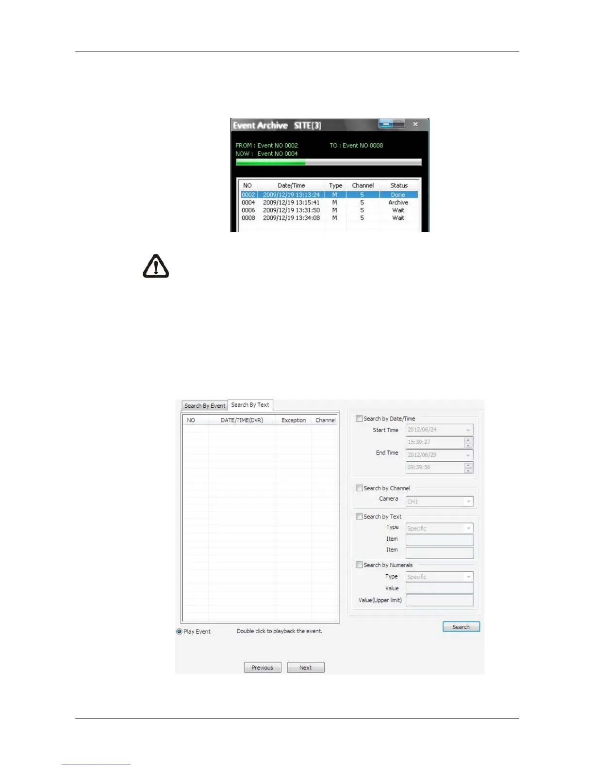 NOTE: The event archive or normal video archive for different sites