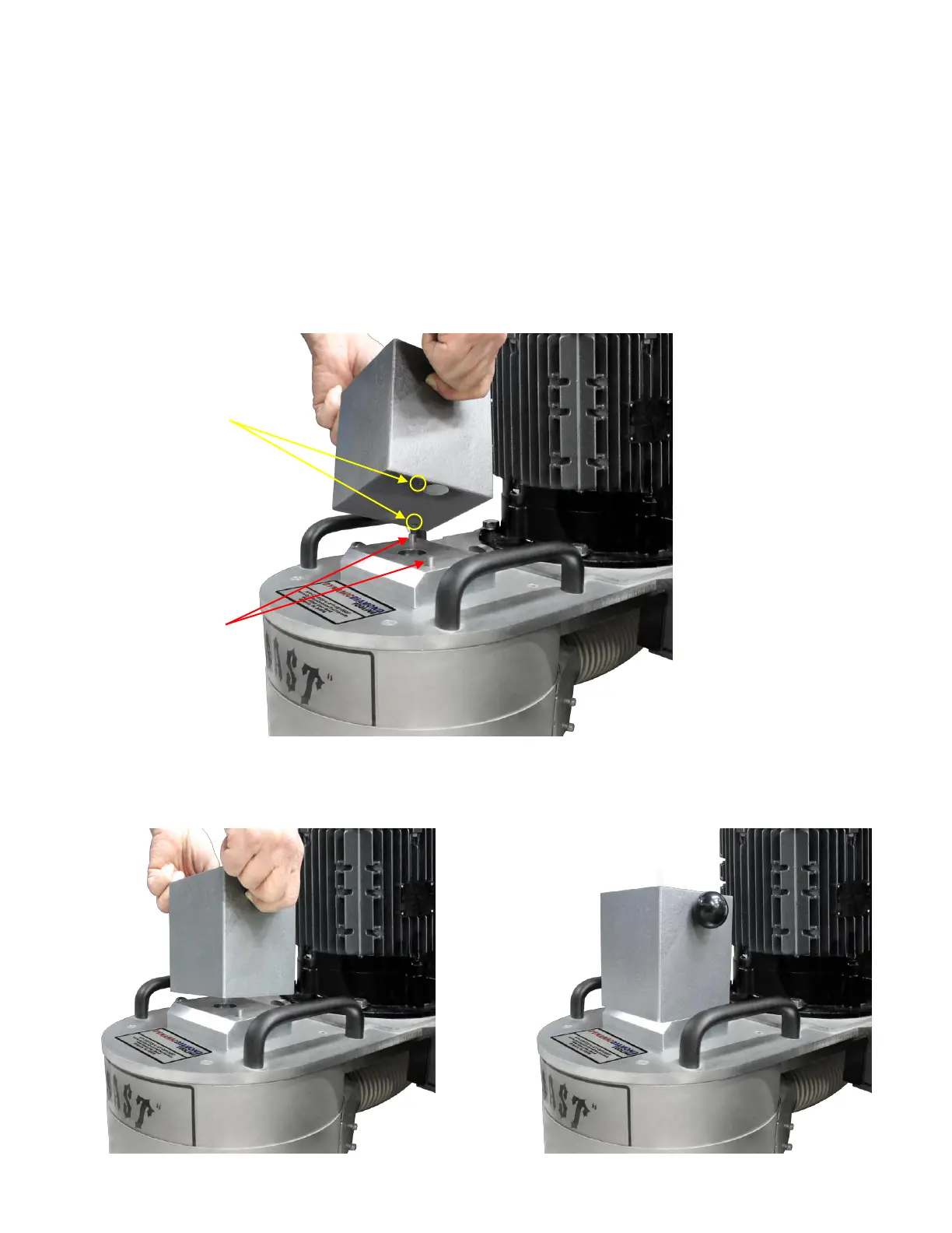 Grasp the weight with the handles and align the two holes on the bottom of the weight with