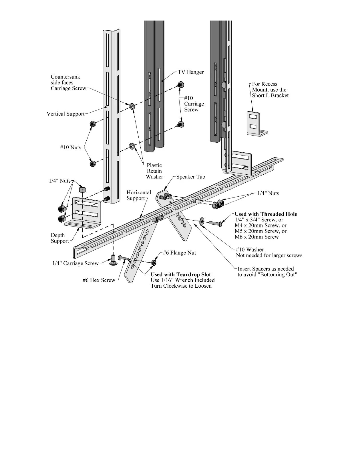 3. We recommend assembling the Vertical Supports on the TV Hanger, and putting everything else on the speaker on the ground.