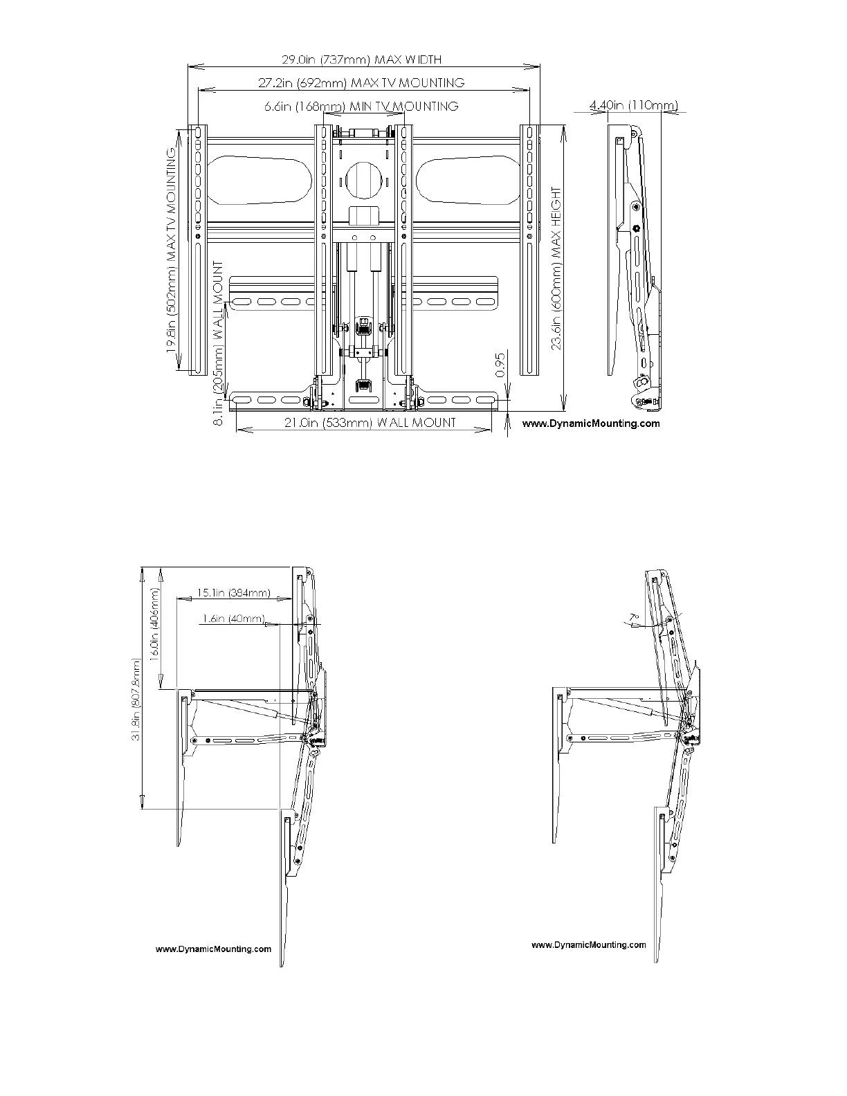 Figure 2 Side Views of Mount, Shown in the Top, Bottom, and All the Way Out Positions