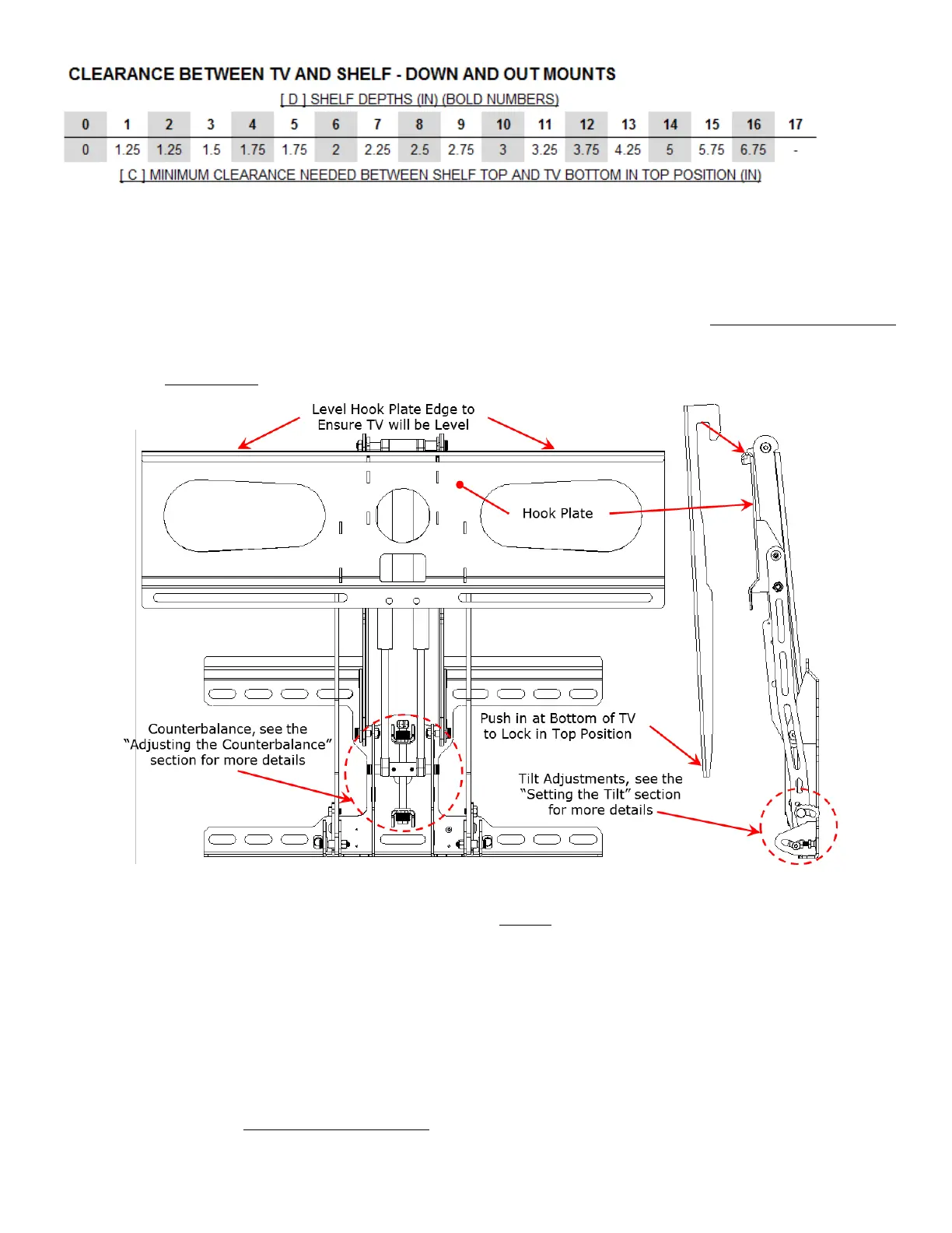 5. If the mount doesn’t lock in the top position, the weight of the TV will cause the mount to come down until the counterbalance