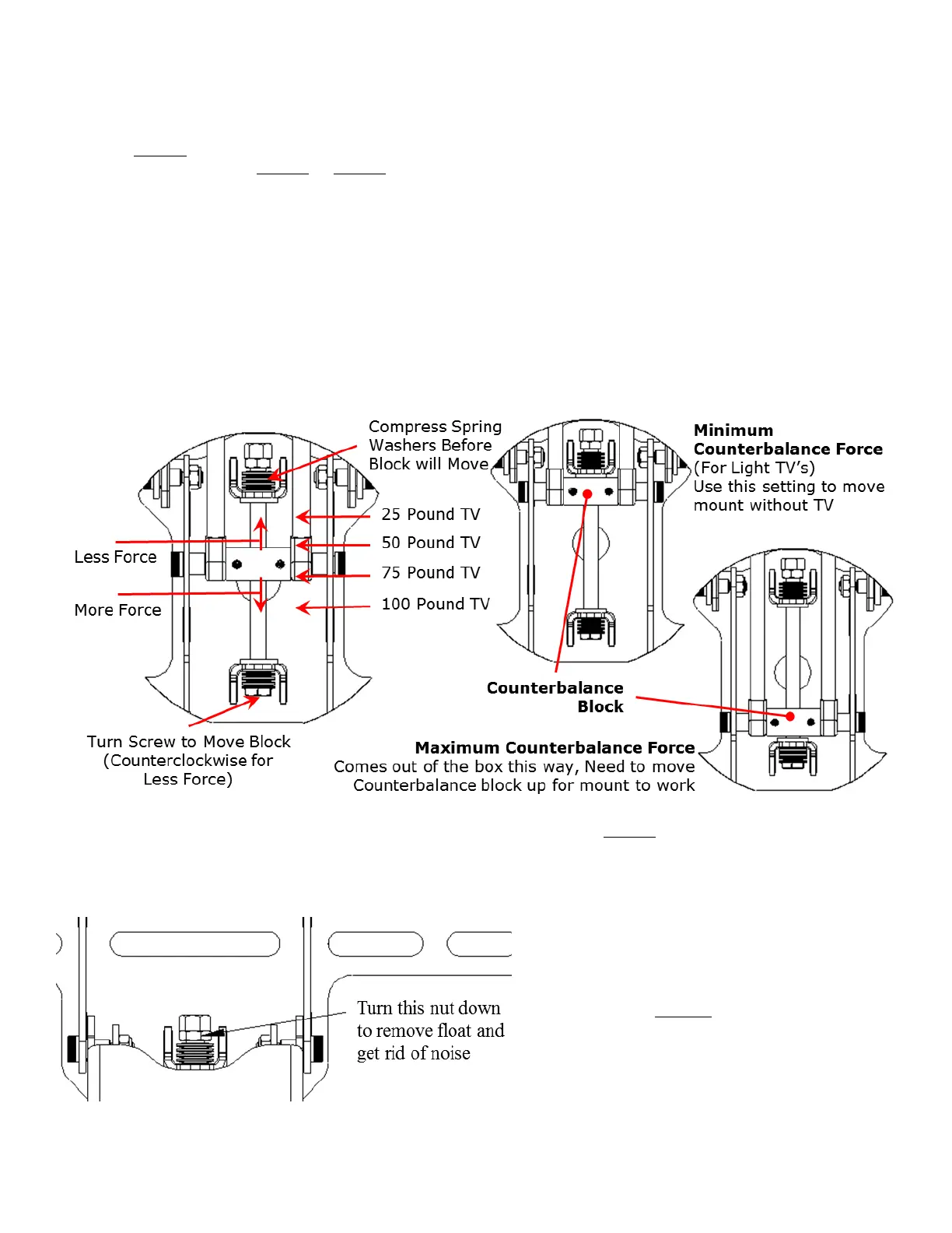 your television. To adjust the counterbalance, turn the bottom of the counterbalance screw with only one 9/16 inch box or ratcheting