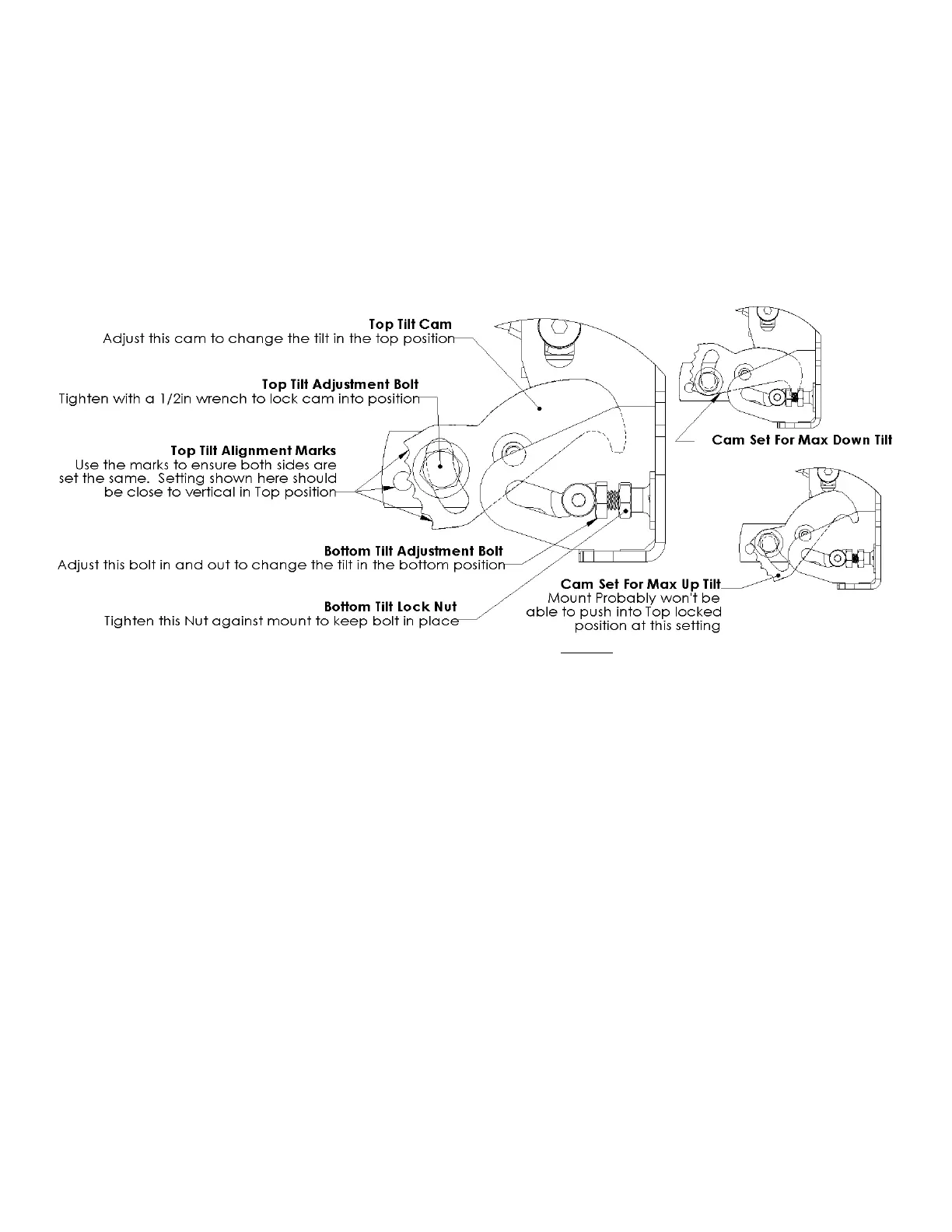 and so there isn’t any force on the cam. Adjust the Top Tilt Cam to the desired position and tighten with a 1/2 inch box wrench. There