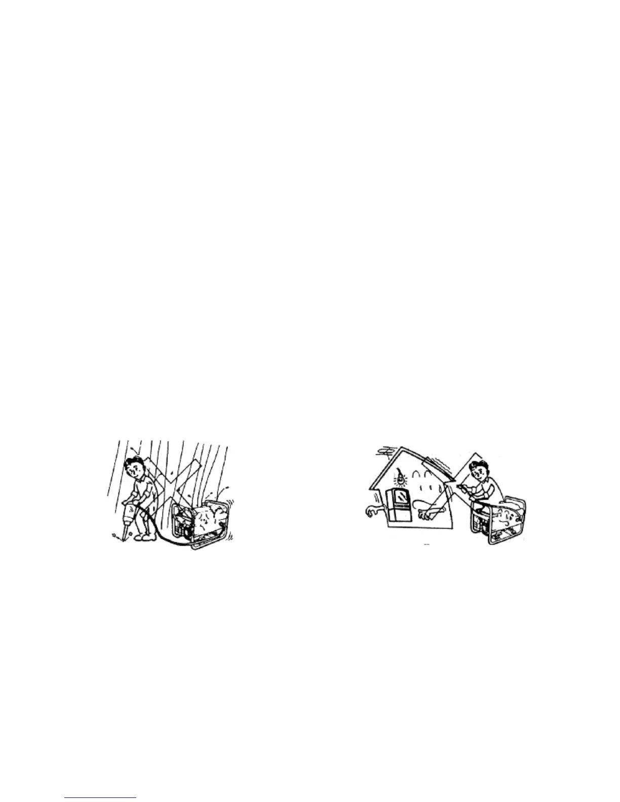 • The Generator produces enough electric power to cause a serious shock or electrocution if misused. Using a