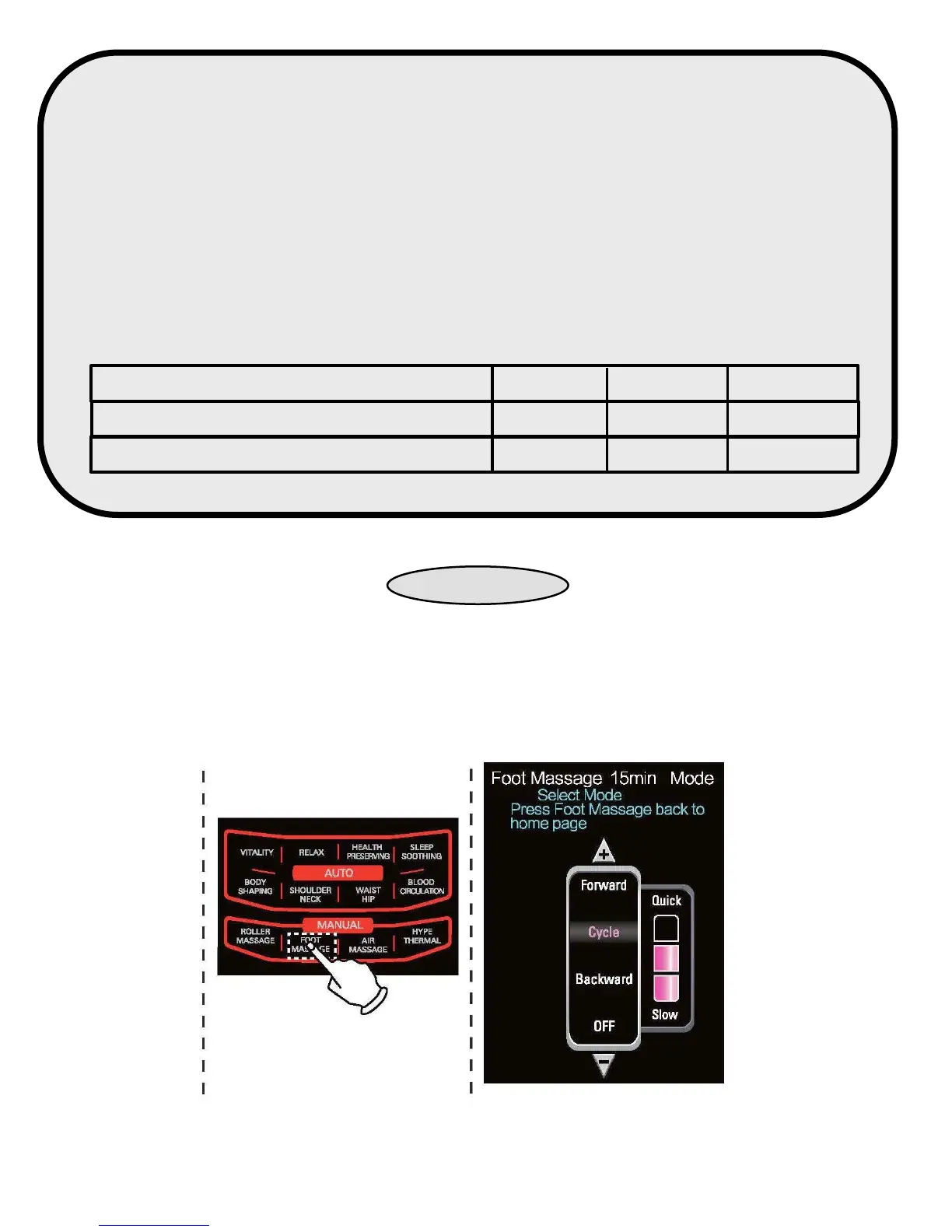 massage mode will begin and run for 15 minutes. The speed will be set to the default