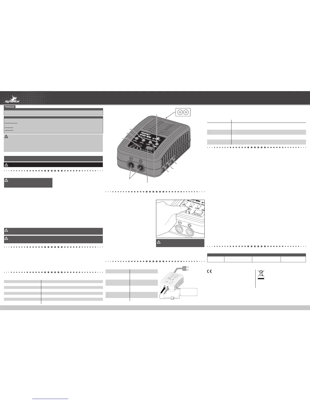 ATTENTION: Vérifiez toujours que les caractéristiques de la batterie correspondent au chargeur. Un non respect de cette consigne peut entraîner
