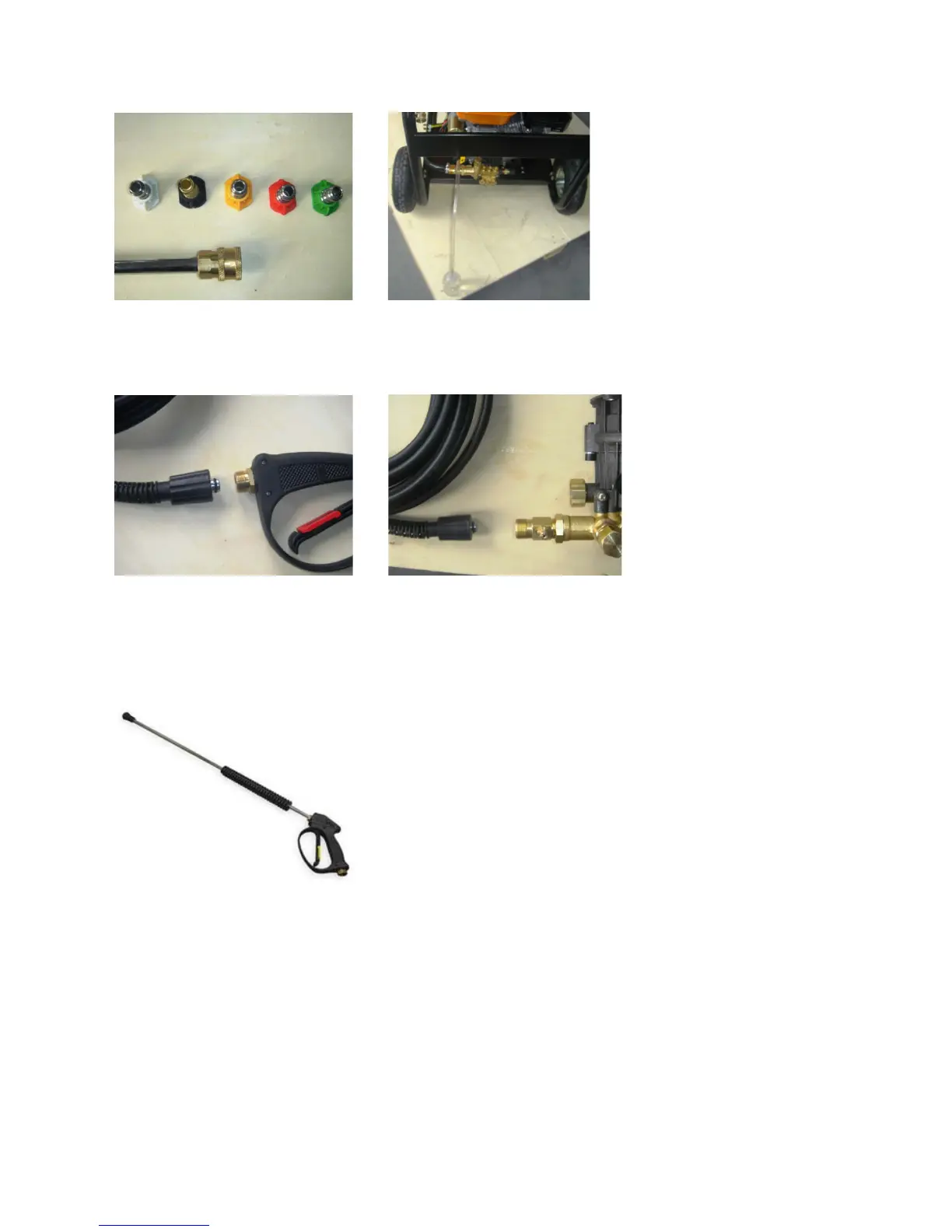 Connection of the high pressure hose to the gun and the pump