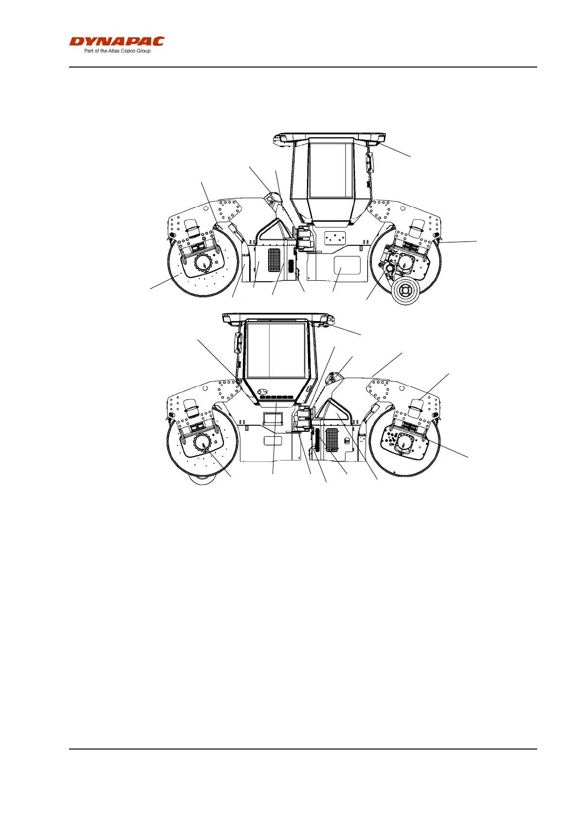 7. Hydraulic tank cap 15. Drum gear 23. Cab, AC7. Hydraulic tank cap 15. Drum gear 23. Cab, AC