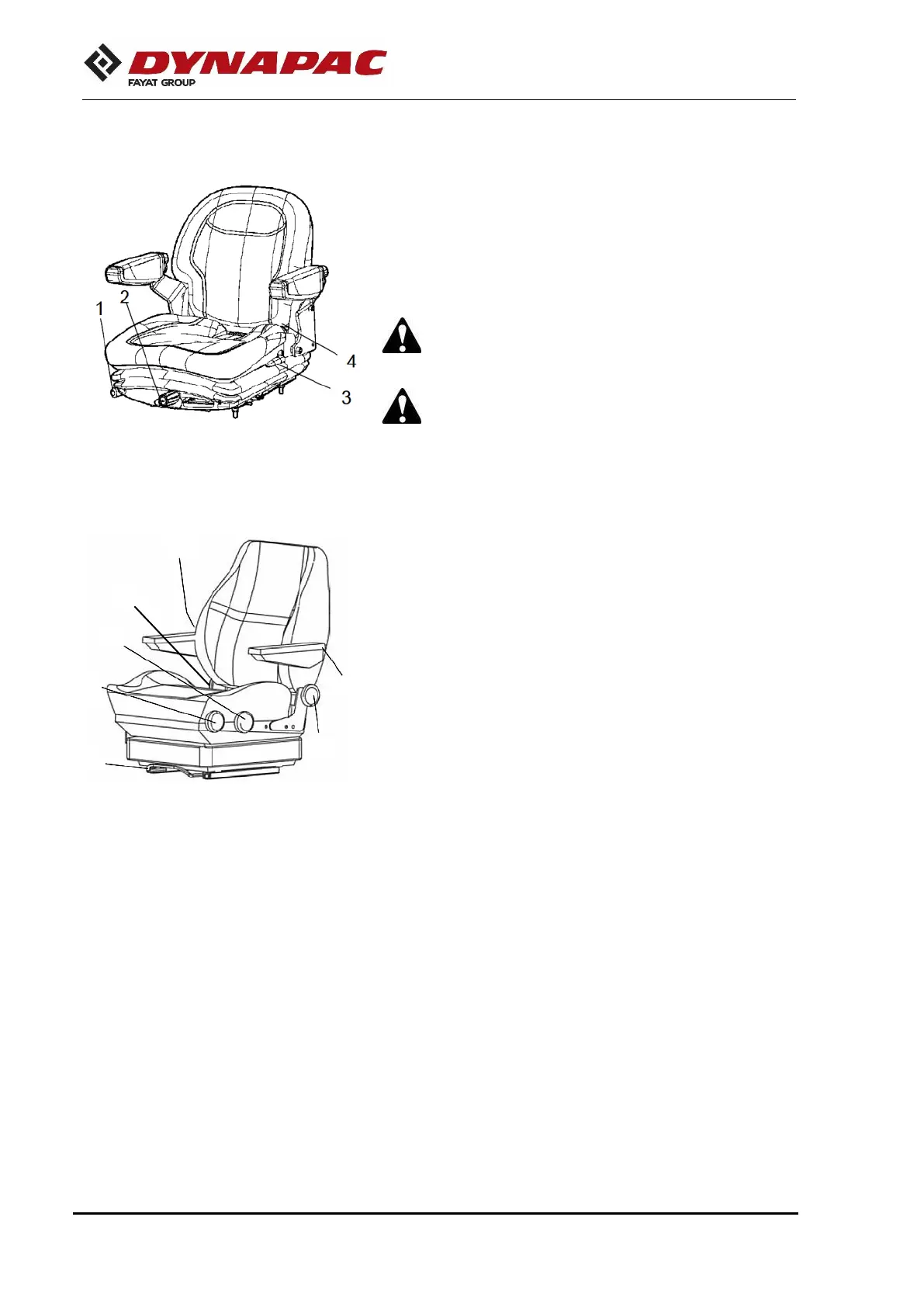 Standard operator's seat - adjustment