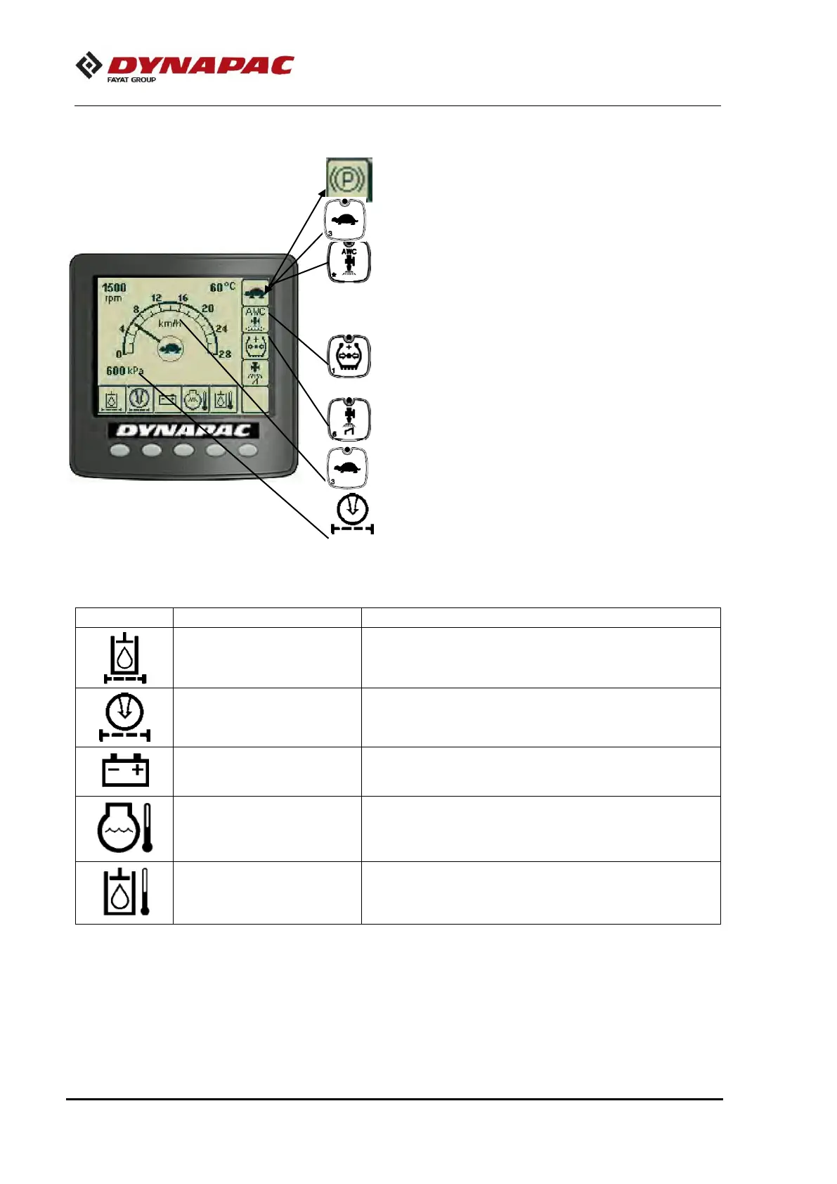 = Alarm display, see the table below for information.
