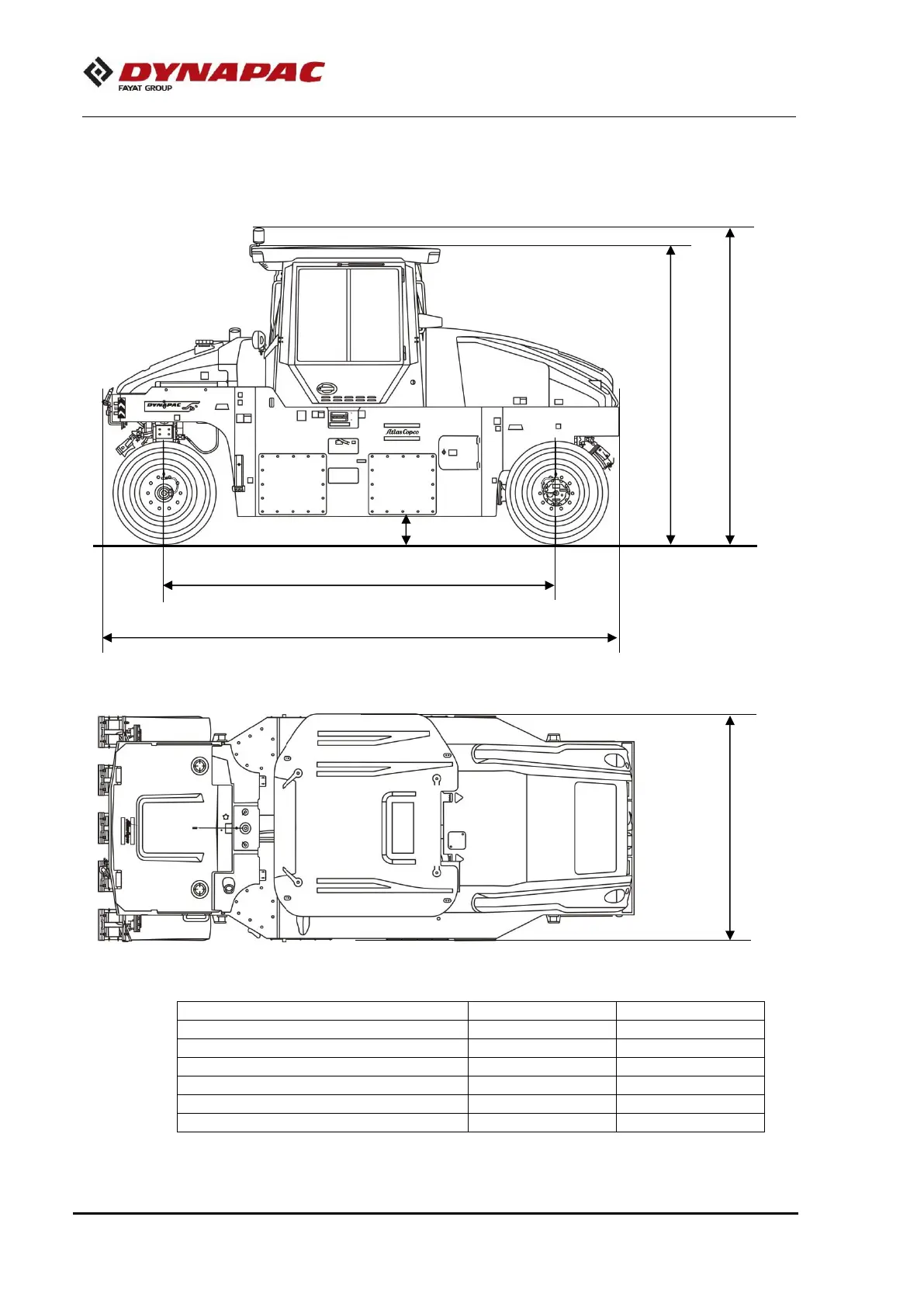 Dynapac CP2700 - Machine Dimensions; Key Machine Measurements