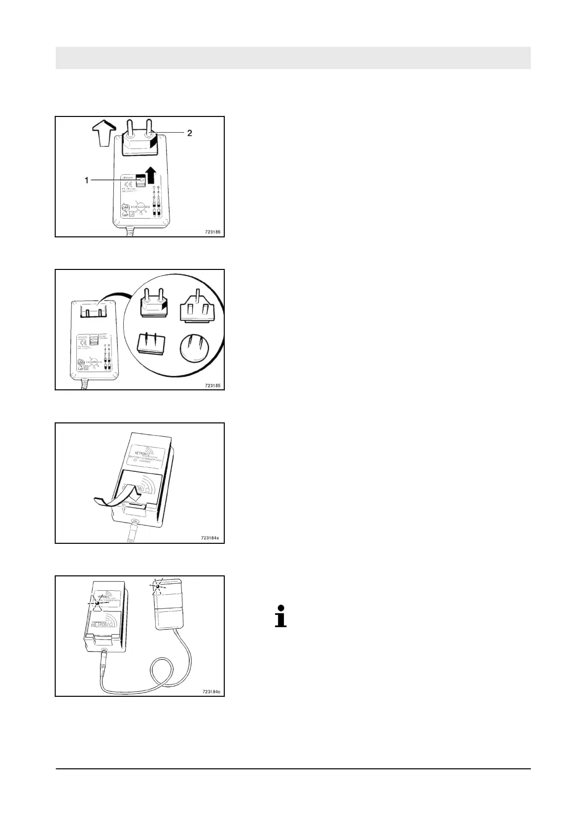 1. Push the lock (1) on the mains unit of the battery charger for-