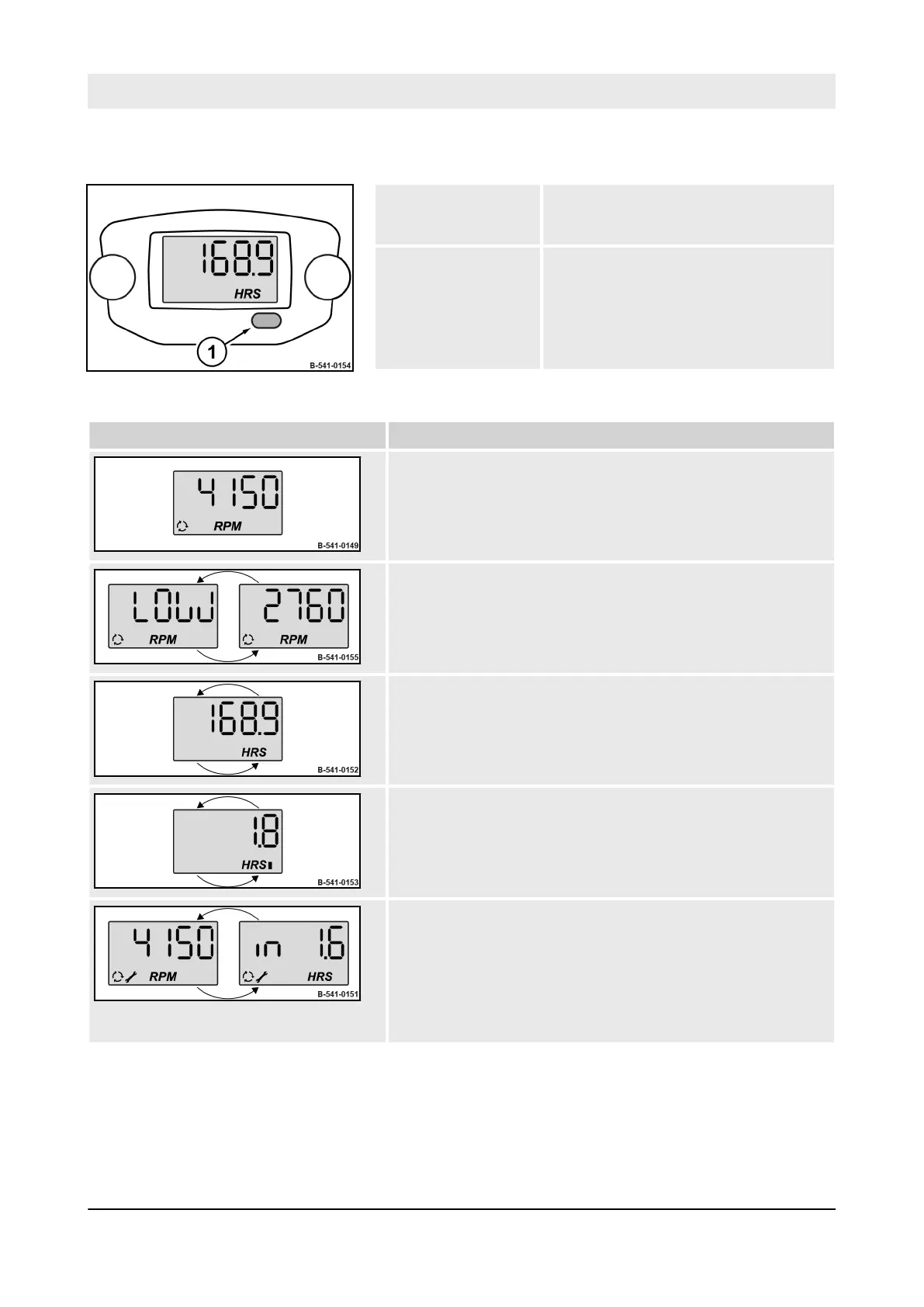Operation – Operating hour meter/engine rpm-meter