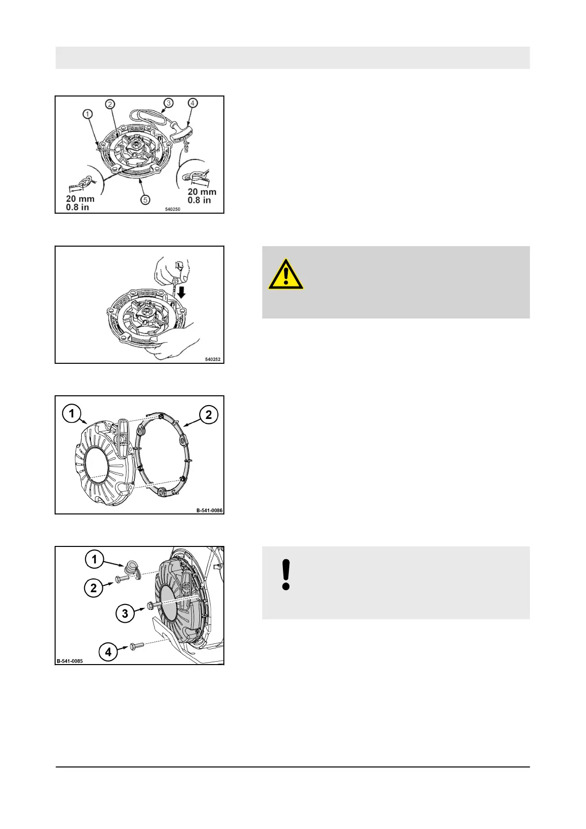 11. Clip in the spacer ring (2) on the recoil starter (1).