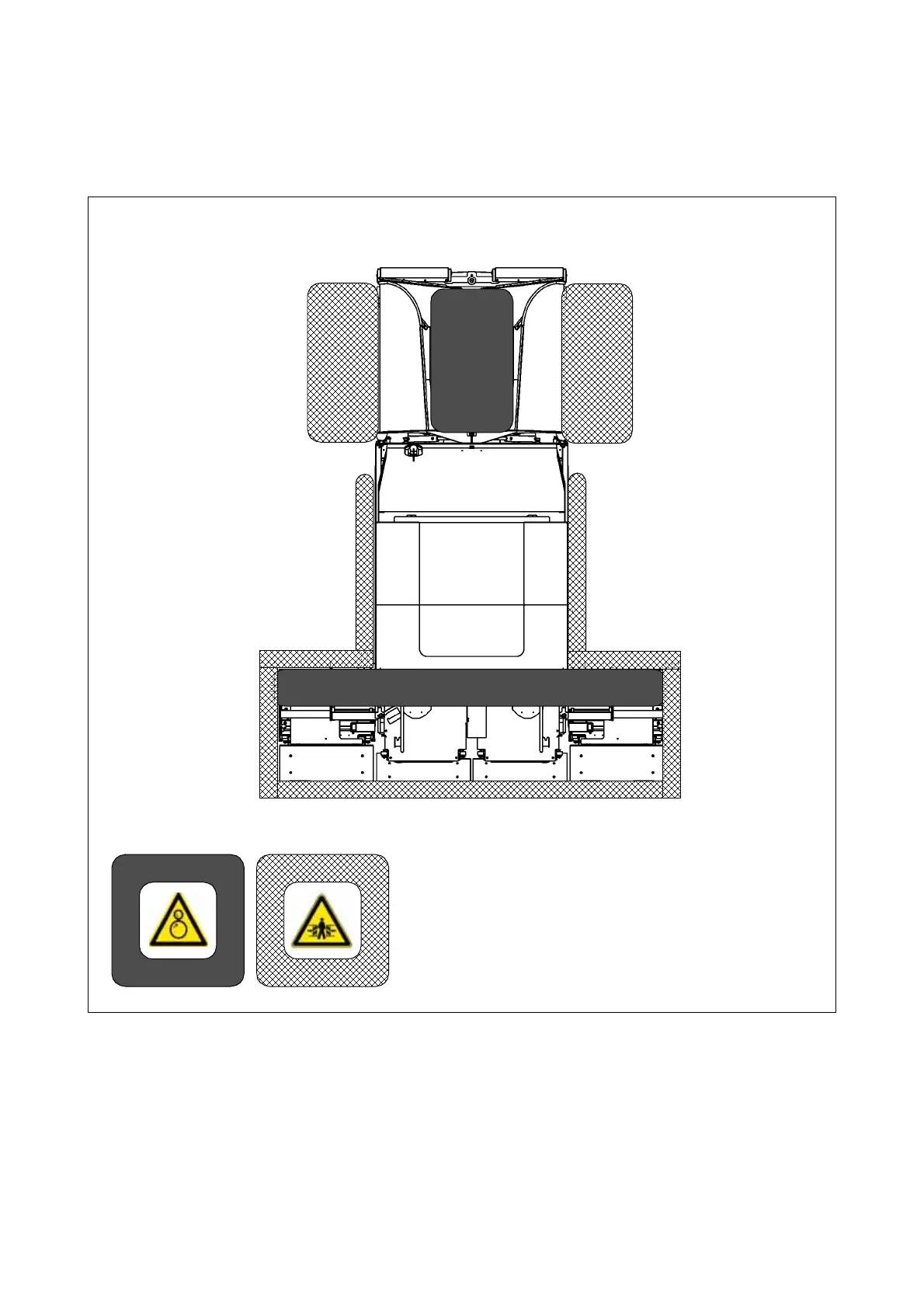 In these areas of the machine there is a danger of pulling in or crushing due to the