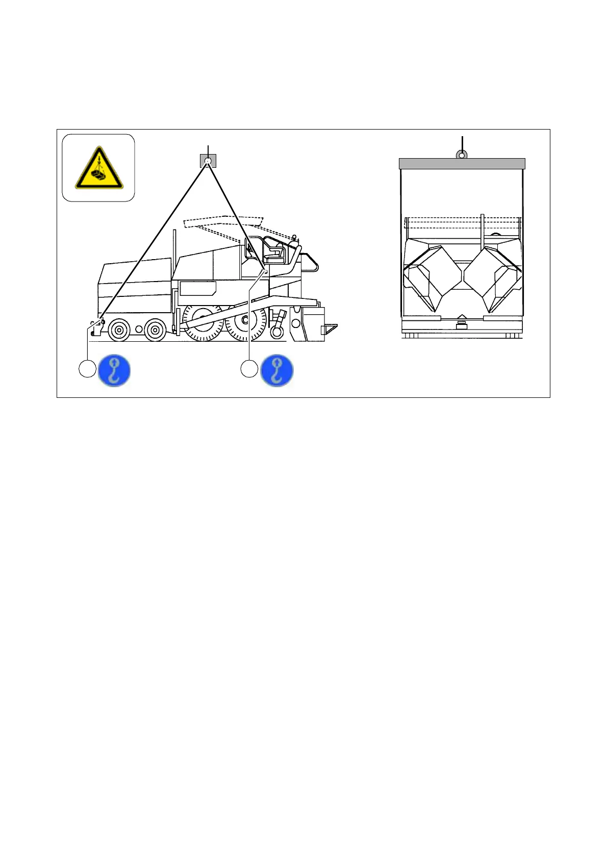 - Attach the lifting gear to the four lifting eyes (1,2).