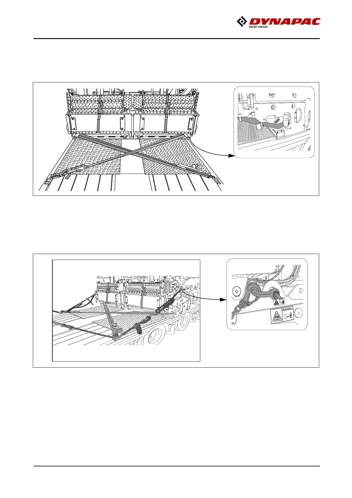 Diagonal lashing secures the paver finisher at the rear