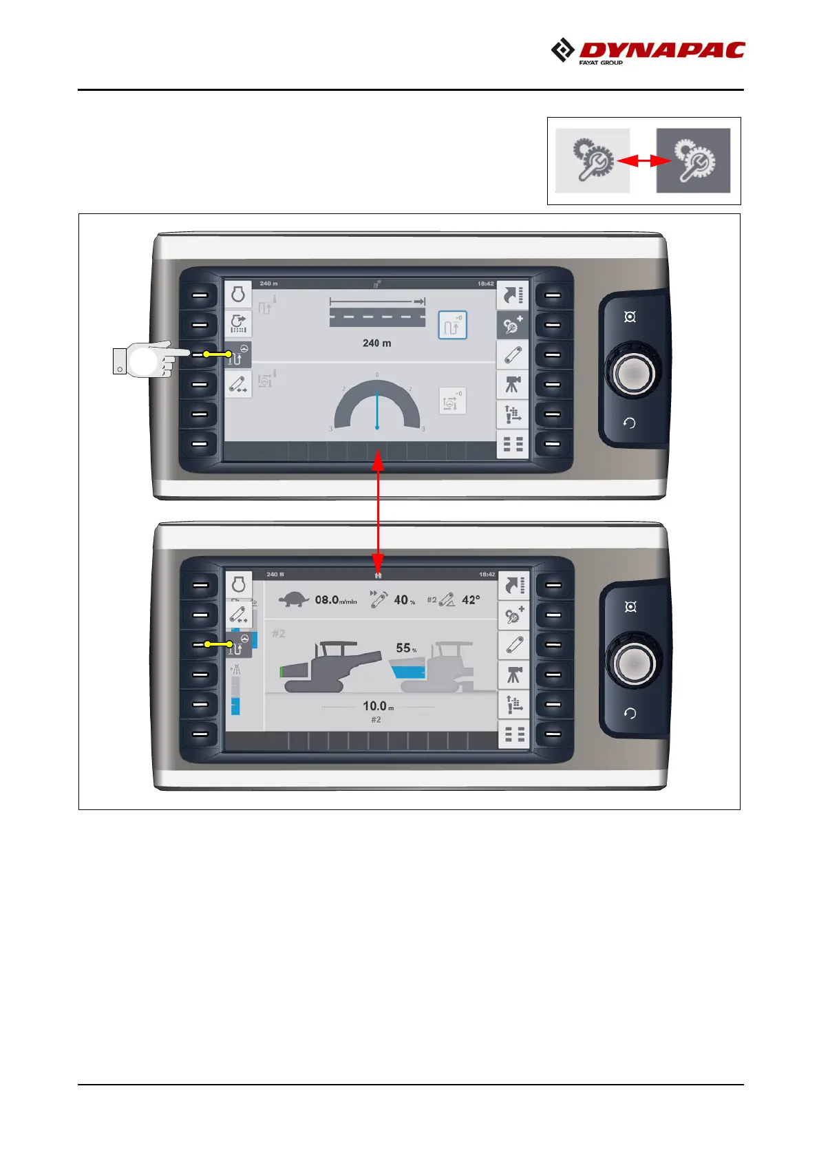 To confirm an active/opened menu, the colour of the cor-