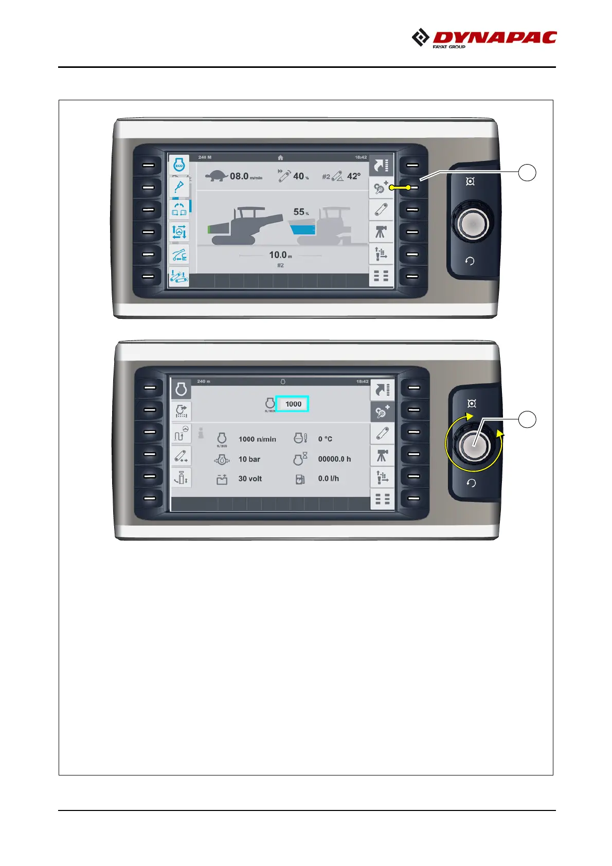 Dynapac MF2500CS - Menu operation - procedure for adjusting parameters