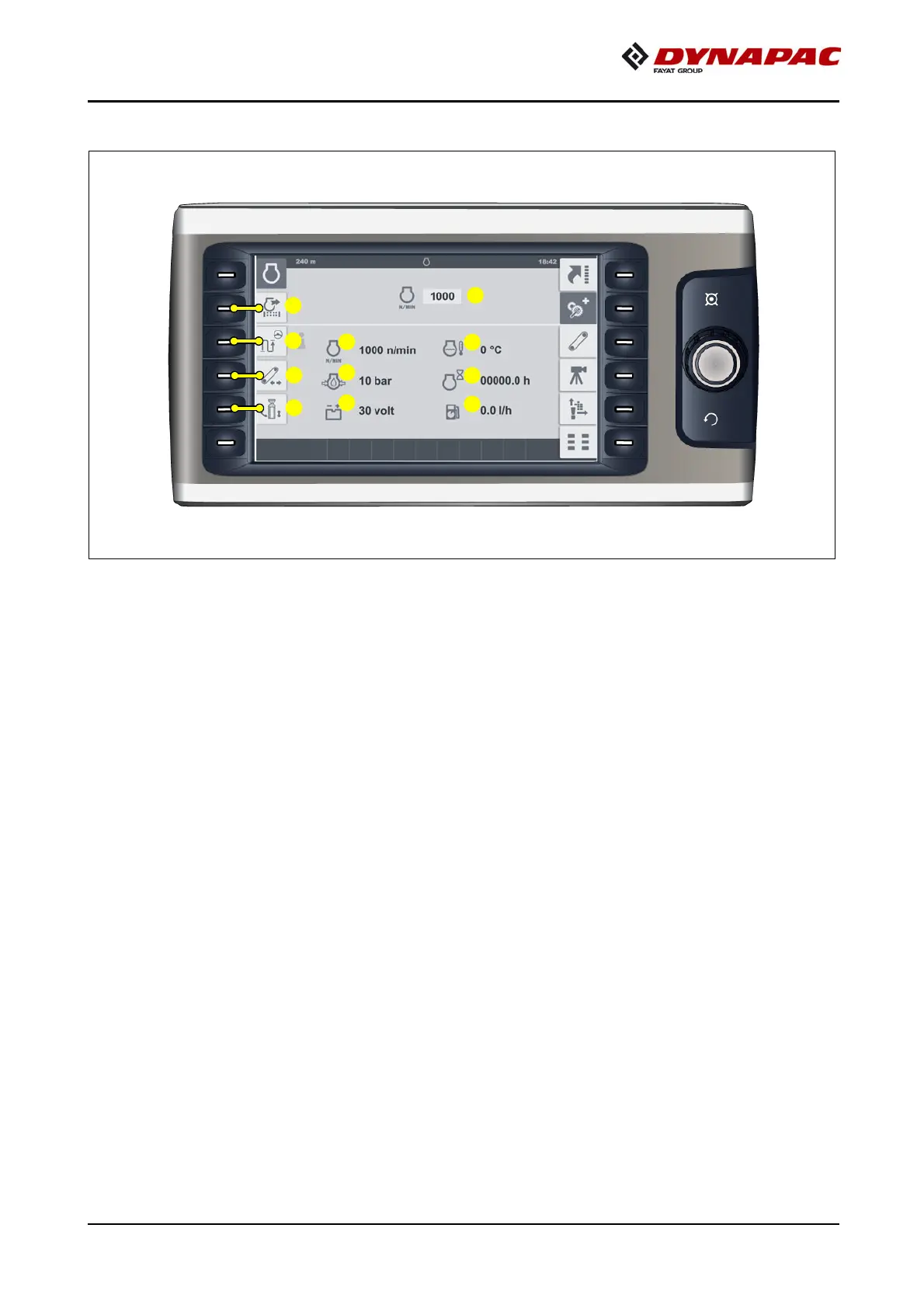 - (10) "Conveyor an distance control" adjustment and display menu.