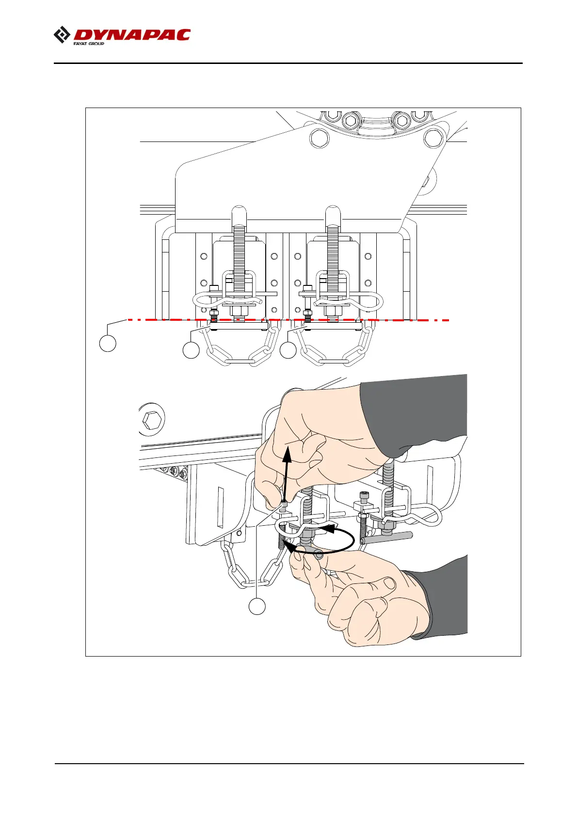 - Tighten the scraper at the T-bolts (A) so that the lower edge of the two scrapers
