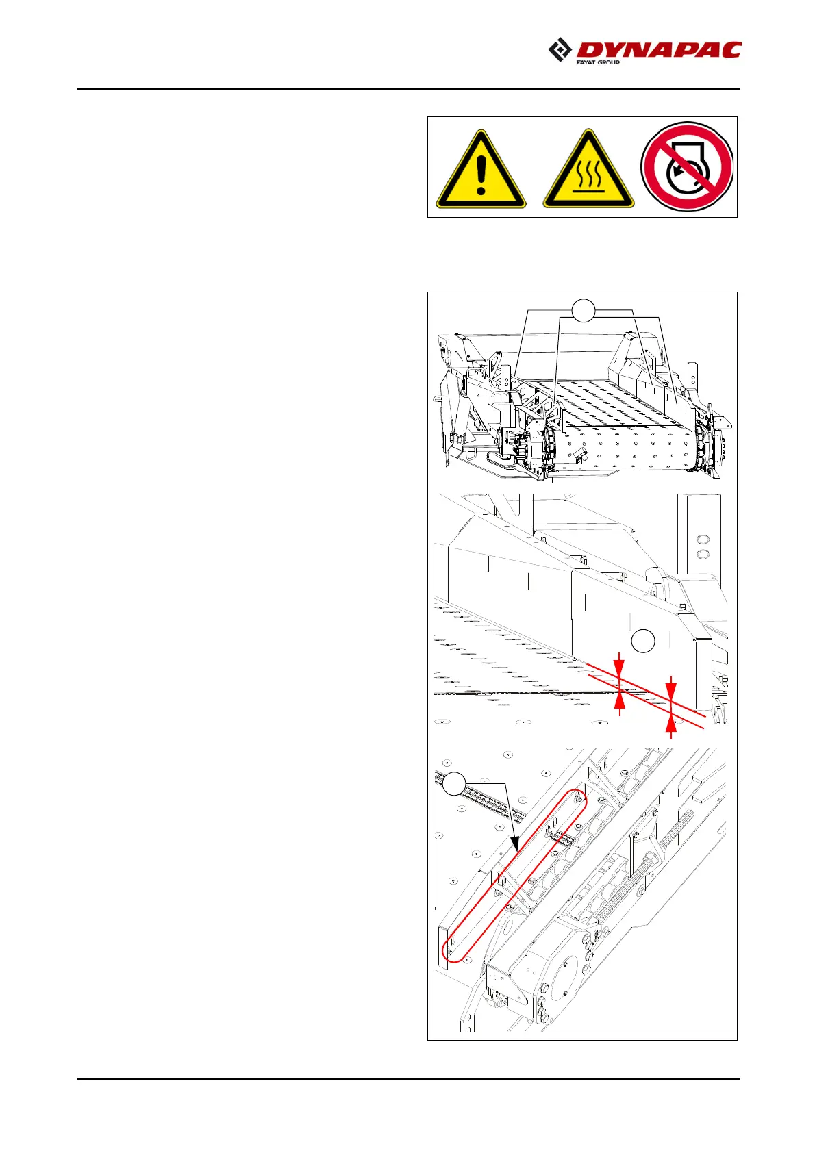 tance between the side shields and the conveyor belt must be checked and readjust-