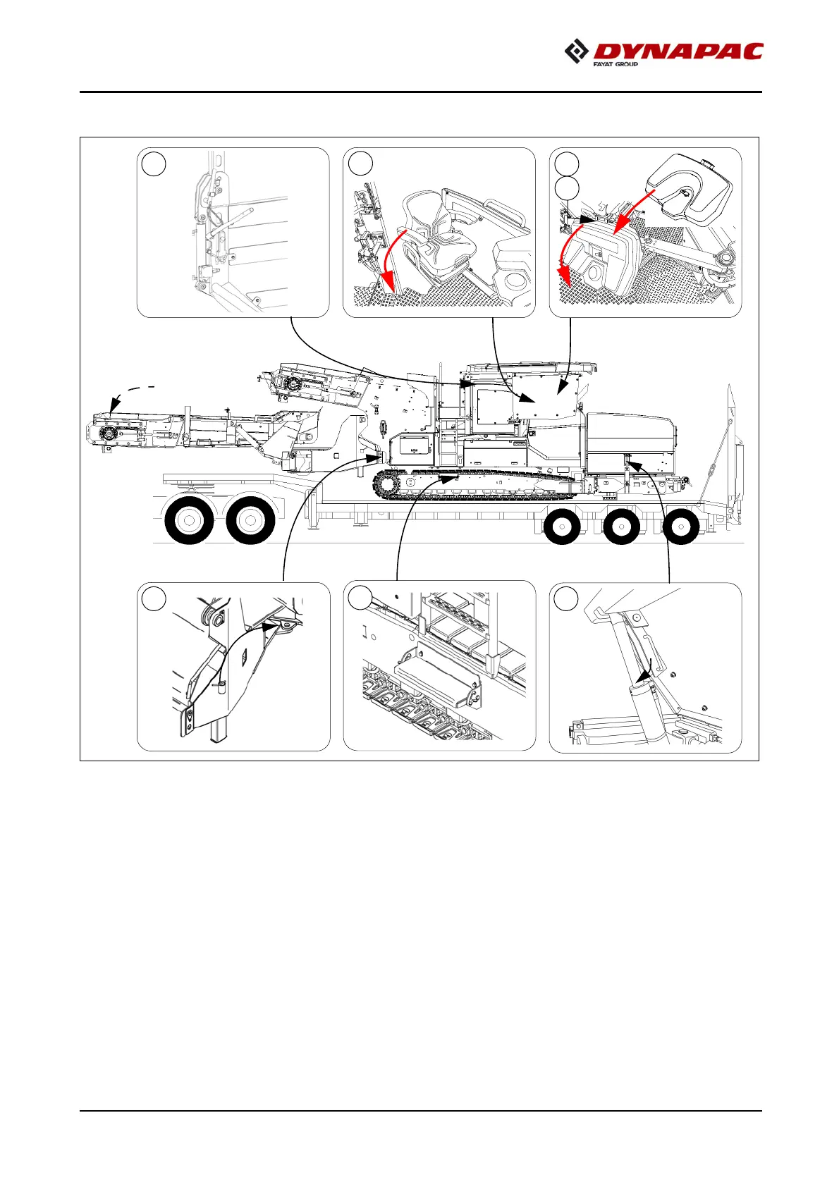 - Lower slewing belt (o) to lowest position.