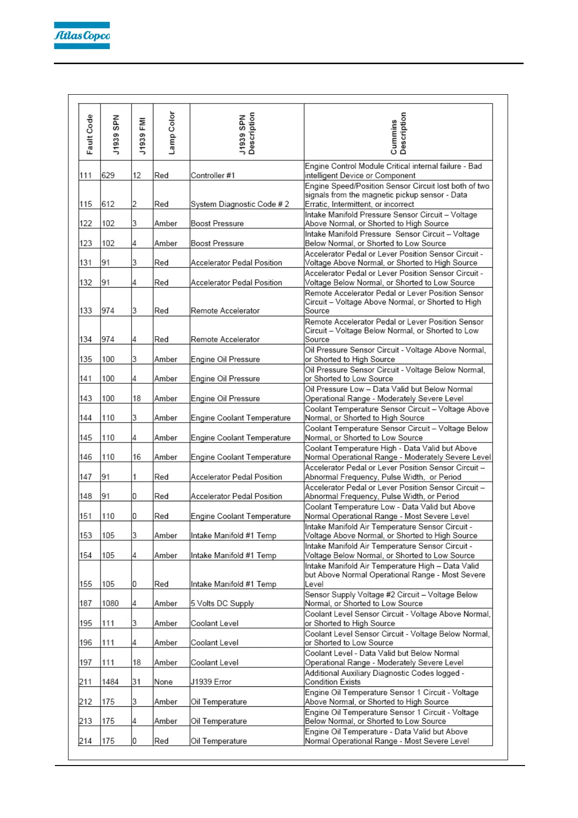 Dynapac SD2550C - 2.2 Error codes