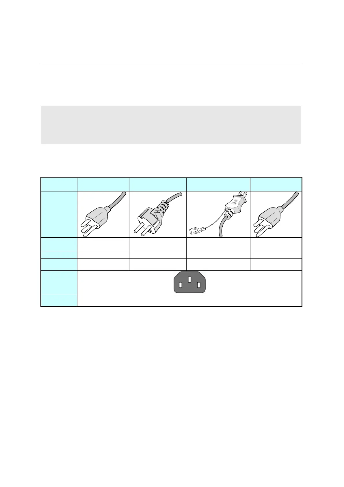 Attention: Please use the following table to check whether the included power cord is suitable for your