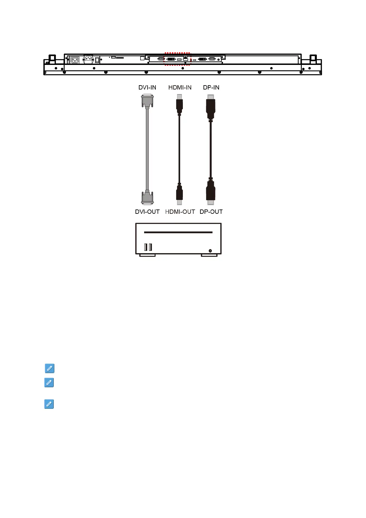 into the chain with the supplied DVI cable (or DP cable, HDMI cable) and RS-232 cable. Connect the